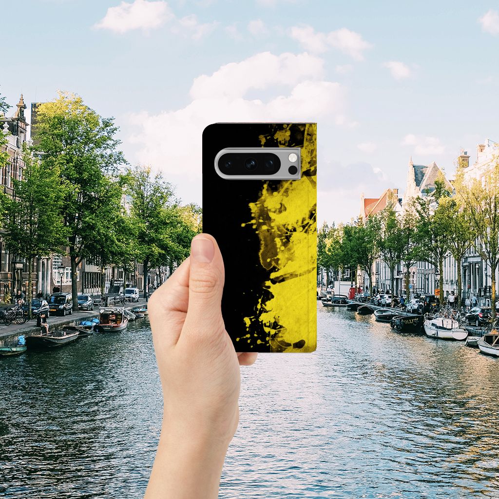 Dit design hoesje met Belgische kleuren van de vlag ziet er zeer fraai uit. De redenen om België te bezoeken zijn legio. Zo is Antwerpen een populaire stad om te winkelen, zijn Gent, Brussel en Brugge erg in trek als stedentripbestemming en kunnen natuur- en sportliefhebbers zich in grote delen van het land uitstekend vermaken. Wat België zo leuk maakt als bestemming is dat je direct het gevoel hebt in het buitenland te zijn, maar dat het toch heel vertrouwd aanvoelt. Ben jij liefhebber van dit gezellige land, dan zal dit design hoesje in Belgische kleuren je waarschijnlijk wel bevallen. Ze staan op een Google Pixel 8 Pro Standcase. Deze case beschermt jouw telefoon aan alle kanten en beschikt over een 1 opbergvakje en een speciale standaard. Het hoesje wordt afgesloten met een magneet aan de binnenzijde. De houder aan de binnenzijde is van TPU.