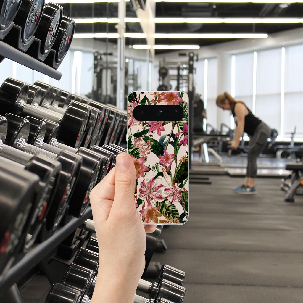 Dit Flowers design is een zegen voor de mens en zijn smartphone. De paarswitte bloemen en groene bladeren op deze Google Pixel 8 Pro TPU Case geven jouw smartphone een zeer sierlijke uitstraling. Je wordt er ook meteen vrolijker van als je aan het appen, mailen of aan het bellen bent. Valt dan je telefoon op de grond, dan zal er dankzij de tpu case met paarswitte bloemen en groene bladeren geen schade ontstaan. Helemaal niet als je er een screenprotector bij hebt gekocht. Onze tpu cases met paarswitte bloemen en groene bladeren zien er zeer prettig uit en zijn heel praktisch, getuige onder meer de opstaande randen en het flexibele materiaal. Alleen de achterkant van de tpu case wordt bedrukt met paarswitte bloemen en groene bladeren, de randen blijven transparant. Op deze tpu case kun je trouwens ook in no time zelf foto’s van jouw favoriete bloemen zetten.