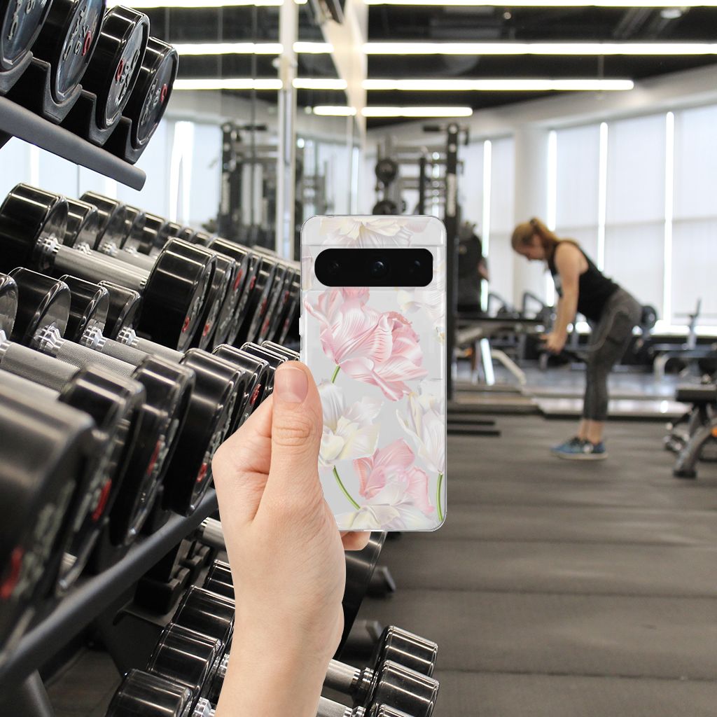 Een bosje bloemen doet een mens (en zijn smartphone) goed. De witte en roze bloemen op deze Google Pixel 8 Pro TPU Case geven jouw smartphone een zeer mooie uitstraling. Je wordt er ook meteen een stuk rustiger van als je aan het appen of aan het bellen bent. Valt dan je telefoon op de grond, dan zal er dankzij de tpu case met het design Lovely Flowers ontstaan. Helemaal niet als je er een screenprotector bij hebt gekocht. Onze tpu cases met roze en witte bloemen zien er zeer prettig uit en zijn heel praktisch, getuige onder meer de opstaande randen en het flexibele materiaal. Alleen de achterkant van de tpu case wordt bedrukt met roze en witte bloemen. Op deze tpu case kun je trouwens ook een eigen ontwerp zetten. In een paar simpele stappen ontwerp je zelf een stand case met daarop jouw favoriete bloemen.