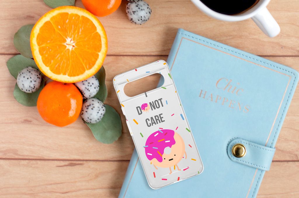De cartoon met Donut op dit design hoesje geeft jouw smartphone een grappige en vrolijke uitstraling. De Google Pixel 8 Siliconen Case zorgt ervoor dat je je schouders op zult halen als je telefoon een keer op de grond valt. Omdat er geen schade zal optreden kun jij je weg weer heel makkelijk vervolgen. De grappige Donut Care tpu case is nergens anders te krijgen. Het design is namelijk van de hand van onze eigen ontwerper. Daarnaast zal de case jouw smartphone goed beschermen. Een Donut Care tpu case is een zeer flexibel hoesje. Dit komt onder andere door het elastische en onbreekbare materiaal. Verder is de case zeer praktisch. Wat denk je bijvoorbeeld van de opstaande randen aan de voorkant. Verder beschikt de case ook nog eens over alle noodzakelijke uitsparingen. Ook kun je zelf je eigen unieke hoesje ontwerpen, met eigen cartoons, foto’s en teksten. Een Donut Care tpu case wordt alleen aan de bovenkant bedrukt. De randen blijven volledig doorzichtig.