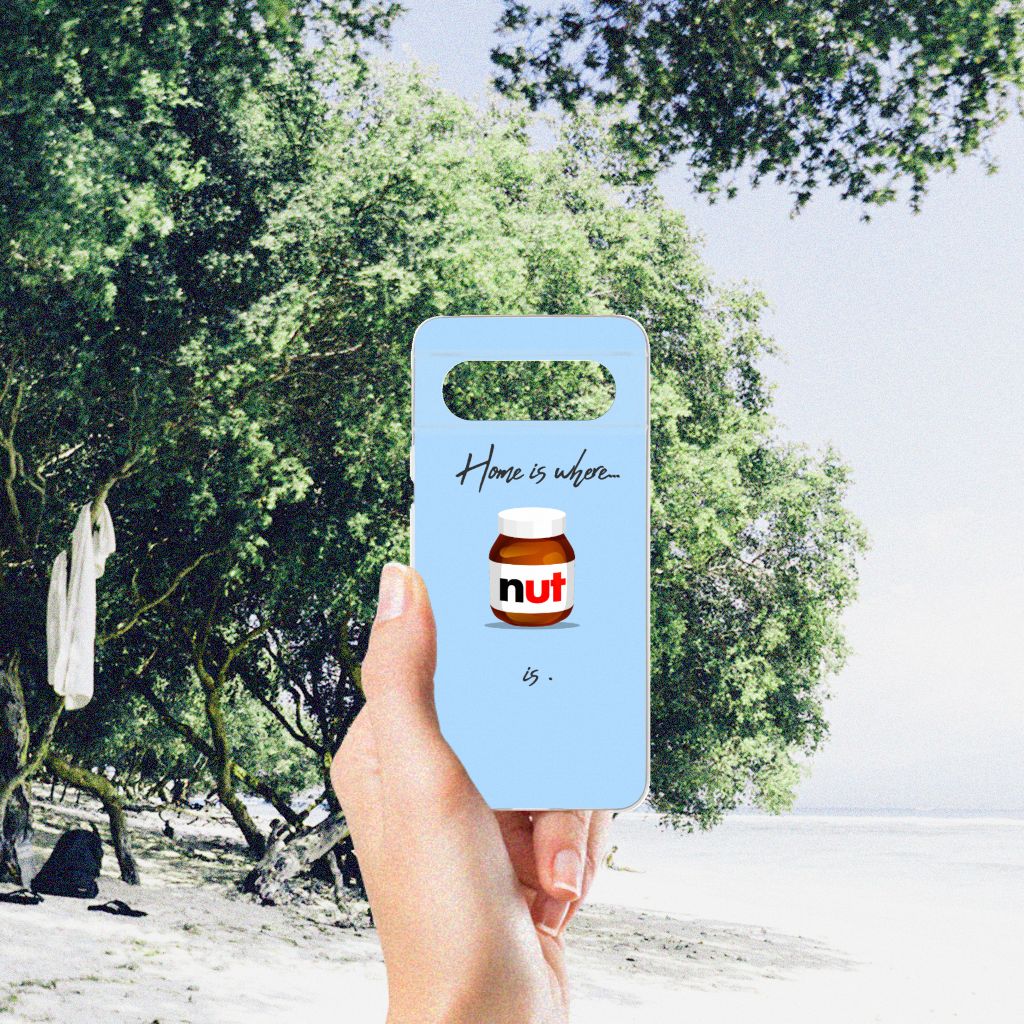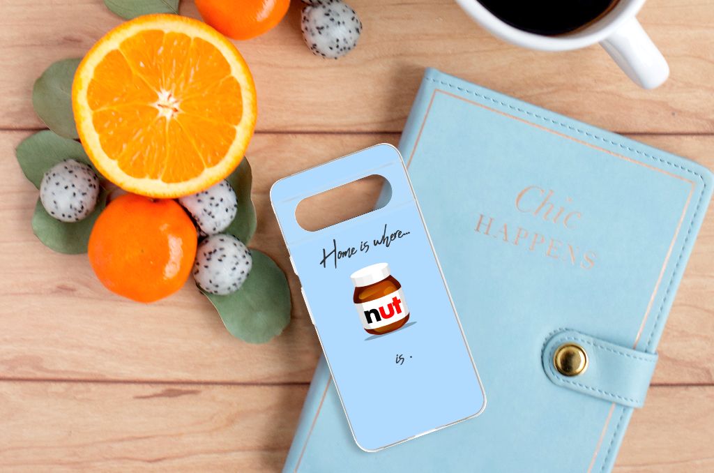 Ben je liefhebber van chocoladepasta, dan is dit het perfecte Google Pixel 8 Siliconen Case voor jou. De chocoladepasta is enorm populair, dus is het niet zo heel gek dat je een ‘Nut Home’ tpu case in een blauwe kleur aantreft in ons assortiment design hoesjes met illustraties. Dit tpu hoesje is zeer flexibel en past altijd in je broekzak. Alleen de bovenkant van dit hoesje wordt door ons bedrukt in blauwe kleur met de pasta, op zeer duurzame manier. Mensen die houden van de bekendste pasta van het moment, kiezen voor deze blauwe tpu case. Er staan geen illustraties op de zijkanten van een tpu case. Je kunt ook een eigen tekst toevoegen aan het opvallende design.