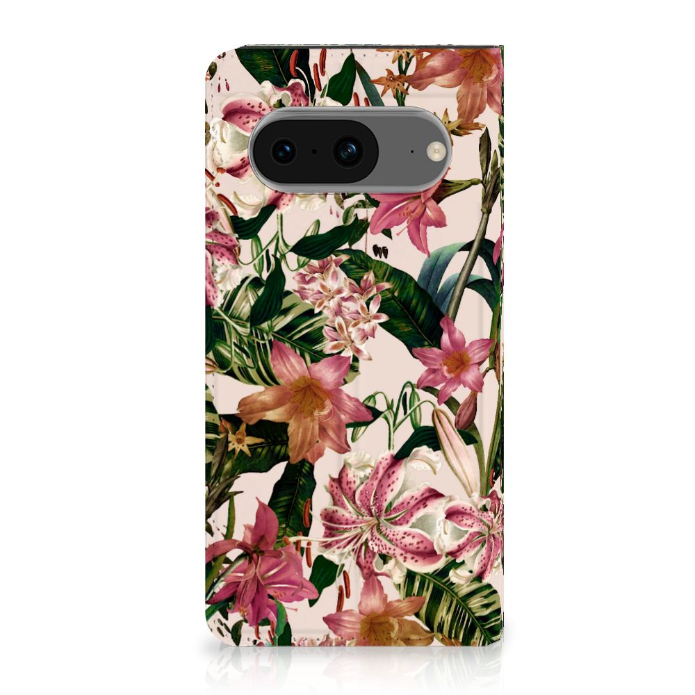 Dit Flowers design is een zegen voor de mens en zijn smartphone. De paarswitte bloemen en groene bladeren op deze Google Pixel 8 Smart Cover geven jouw smartphone een zeer sierlijke uitstraling. Je krijgt er meteen een goed gevoel bij als je aan het appen, mailen of aan het bellen bent. Valt dan je telefoon op de grond, dan zal er dankzij de stand case met paarswitte bloemen en groene bladeren geen schade ontstaan. Onze stand cases met paarswitte bloemen en groene bladeren bieden de allerbeste bescherming en zijn heel praktisch, wat blijkt uit onder meer het vakje aan de binnenkant en de handige standaard waarmee je de smartphone rechtop op tafel neer kunt zetten. De paarswitte bloemen en groene bladeren komen op alle zijden van de case te staan. Op deze stand case van leer en TPU (houder aan de binnenkant) kun je in no time zelf foto’s van jouw favoriete bloemen zetten.