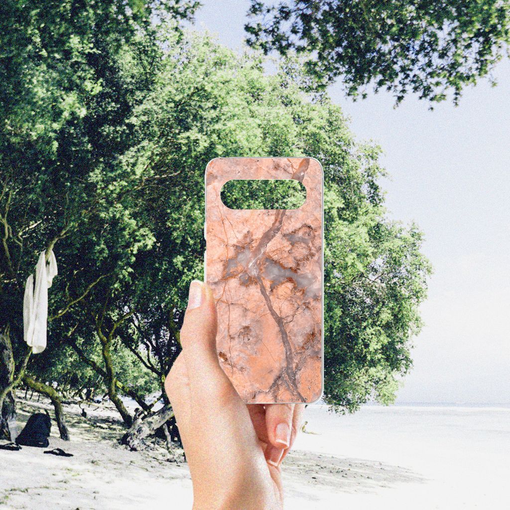 Dit design hoesje met Marmer Oranje is zeer geschikt voor jouw kostbare telefoon. Vanwege zijn prachtige lichtval en vastheid is marmer een zeer gewild bouwmateriaal. Wij kunnen inmiddels concluderen dat dit hoesje met oranje marmer ook zeer gewild is. Beloon jezelf en je telefoon met dit hele mooie Google Pixel 8 TPU Siliconen Hoesje. Naast het oranje marmer zijn er de diverse marmersoorten in een ruim kleurenpallet te krijgen. Deze tpu case met marmer in oranje wordt aan de achterzijde bedrukt. De case beschikt over opstaande randen en is gemaakt van onbreekbaar materiaal. De randen van de case in oranje marmer blijven transparant. Wij hebben onze designer veel vrijheid gegeven met het ontwerpen dit mooie hoesje. Het resultaat zie je terug in deze tpu case met oranje marmer, dat een hele goede bescherming is voor jouw smartphone. Des te mooi dat wij voor variatie hebben gekozen door een hoesje met oranje marmer aan de bieden.