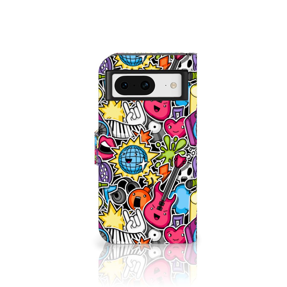 Google Pixel 8 Walletcase met magnetisch lipje als sluiting Punk Rock
