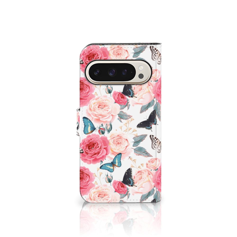 Google Pixel 9 | 9 Pro Hoesje gemaakt van TPU en kunstleer Butterfly Roses