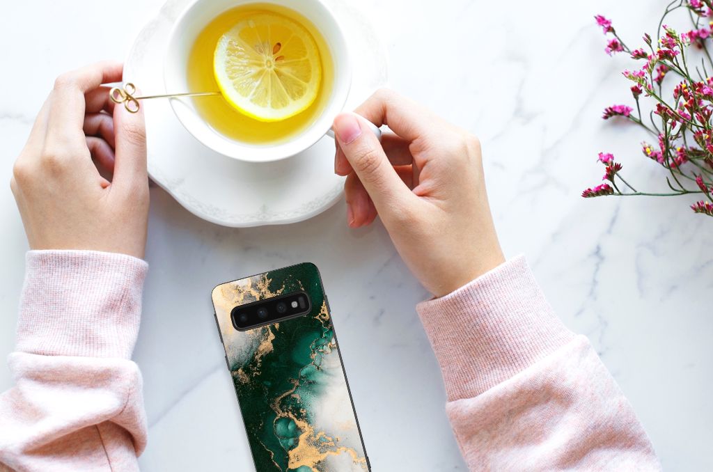Samsung Galaxy S10 Standcase Marmer Zwart - Origineel Cadeau Vader