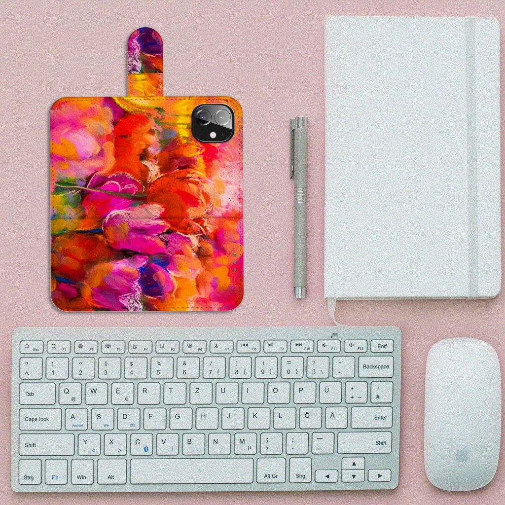 Hoesje Apple iPhone 12 Mini met ruimte voor 3 pasjes Tulips