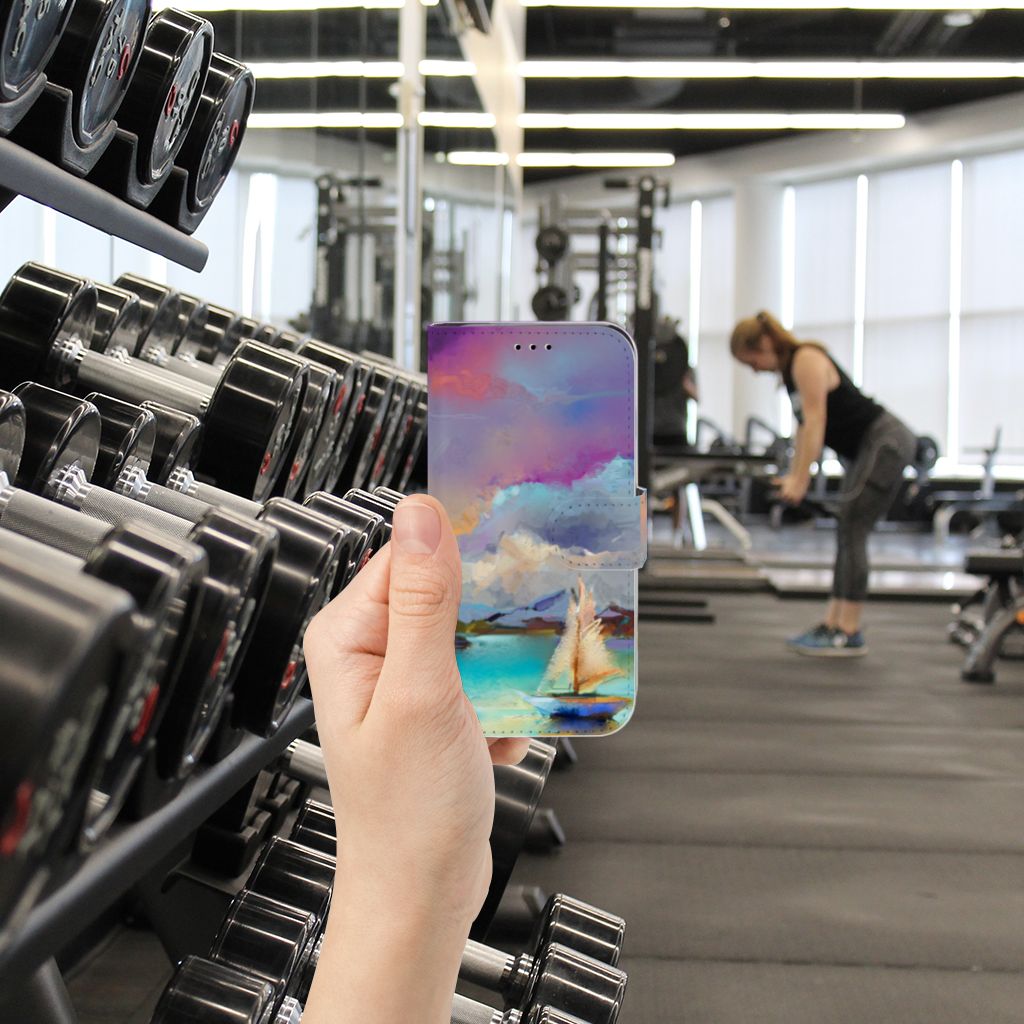 Het design op dit artistieke hoesje met de verschillende tinten van paars, blauw en groen zou je zo zelf op de muur kunnen hangen. Het design laat een boot zien maar dan is hij wat abstracter geverfd met door elkaar lopende kleuren. Als jij houdt van kunst dan is dit artistieke hoesje wat voor jou. Wat het ontwerp extra mooi maakt is dat de gehele bookcase is bedrukt inclusief het magnetische lipje wat als sluiting wordt gebruikt. Het andere voordeel van een bookcase is dat jouw telefoon aan alle kanten is beschermd, ook als je hem op zijn scherm laat vallen is er niks aan de hand en wordt jouw telefoon goed beschermd door het kunstleer wat eromheen zit. Het magnetische lipje zorgt er dan weer voor dat het Apple iPhone X | Xs Hoesje op zijn plek blijft zitten en dat jouw telefoon aan alle kanten beschermd blijft.