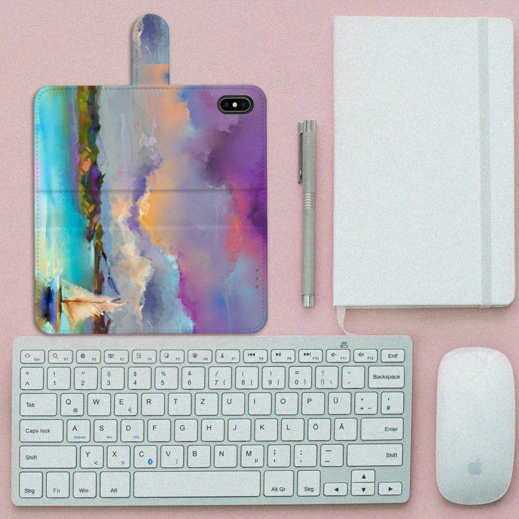 Het design op dit artistieke hoesje met de verschillende tinten van paars, blauw en groen zou je zo zelf op de muur kunnen hangen. Het design laat een boot zien maar dan is hij wat abstracter geverfd met door elkaar lopende kleuren. Als jij houdt van kunst dan is dit artistieke hoesje wat voor jou. Wat het ontwerp extra mooi maakt is dat de gehele bookcase is bedrukt inclusief het magnetische lipje wat als sluiting wordt gebruikt. Het andere voordeel van een bookcase is dat jouw telefoon aan alle kanten is beschermd, ook als je hem op zijn scherm laat vallen is er niks aan de hand en wordt jouw telefoon goed beschermd door het kunstleer wat eromheen zit. Het magnetische lipje zorgt er dan weer voor dat het Apple iPhone Xs Max Hoesje op zijn plek blijft zitten en dat jouw telefoon aan alle kanten beschermd blijft.