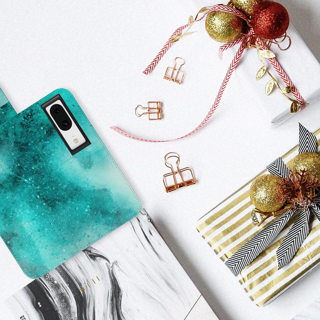 Google Pixel 8 Hoesje ruimte voor 3 pasjes Painting Blue