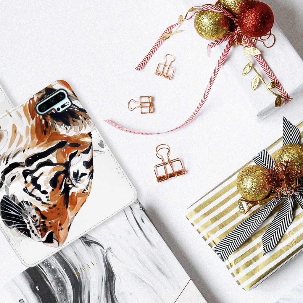 Hoesje Huawei P30 Pro met magnetische sluiting Watercolor Tiger