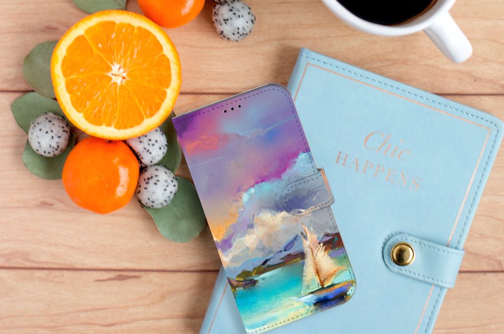 Het design op dit artistieke hoesje met de verschillende tinten van paars, blauw en groen zou je zo zelf op de muur kunnen hangen. Het design laat een boot zien maar dan is hij wat abstracter geverfd met door elkaar lopende kleuren. Als jij houdt van kunst dan is dit artistieke hoesje wat voor jou. Wat het ontwerp extra mooi maakt is dat de gehele bookcase is bedrukt inclusief het magnetische lipje wat als sluiting wordt gebruikt. Het andere voordeel van een bookcase is dat jouw telefoon aan alle kanten is beschermd, ook als je hem op zijn scherm laat vallen is er niks aan de hand en wordt jouw telefoon goed beschermd door het kunstleer wat eromheen zit. Het magnetische lipje zorgt er dan weer voor dat het iPhone 14 Plus Hoesje op zijn plek blijft zitten en dat jouw telefoon aan alle kanten beschermd blijft.