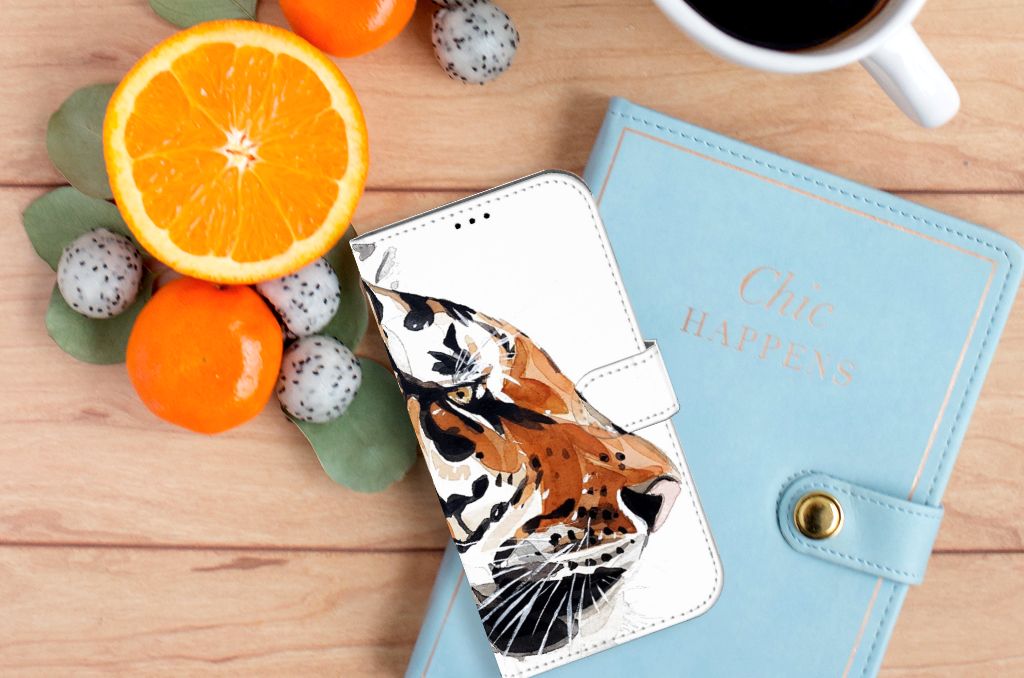 Hoesje iPhone 14 Plus met magnetische sluiting Watercolor Tiger