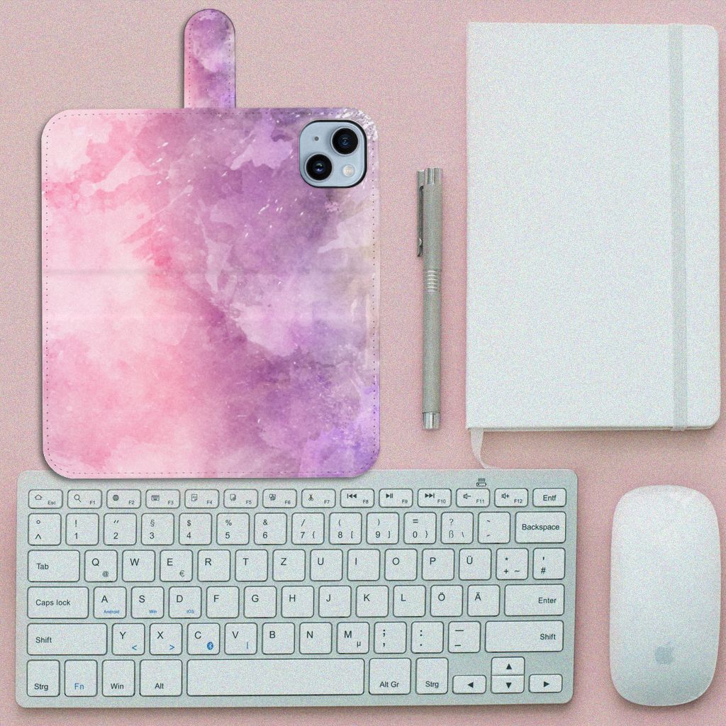 Hoesje iPhone 15 Plus bookcase model Pink Purple Paint