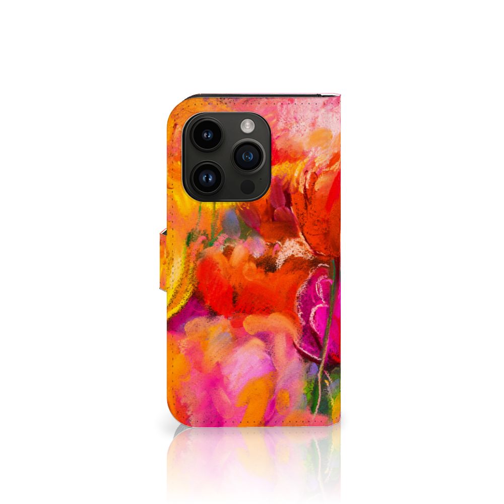 Hoesje iPhone 15 Pro met ruimte voor 3 pasjes Tulips