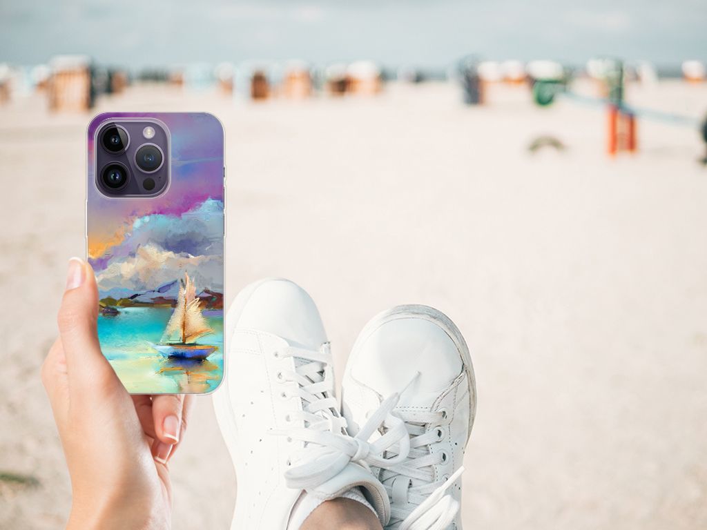 Het mooie ontwerp op dit hoesje zou je zo aan de muur willen hangen. Dit abstracte ‘schilderij’ van een bootje op een meer valt op vanwege de prachtige tinten blauw en paars. Een prachtig hoesje voor de liefhebber van kunst, boten en landschappen. Met een Hoesje maken is je Apple iPhone 14 Pro goed beschermd. TPU is flexibel en heel erg sterk. Zo is je telefoon aan de achterkant en de randen heel goed beschermd. De case is aan de bovenkant bedrukt, de randen blijven transparant. Het TPU-hoesje is perfect te combineren met een screenprotector, zo zijn je telefoon en je beeldscherm altijd goed beschermd.