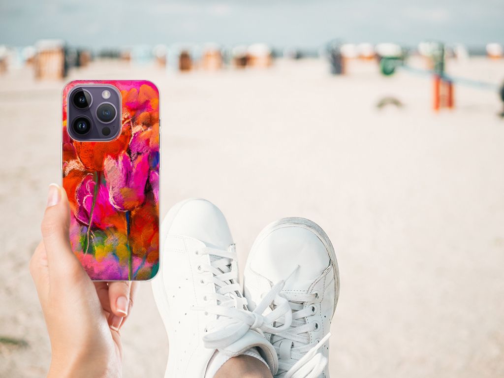 Ben je op zoek naar een uniek telefoonhoesje voor je Apple iPhone 14 Pro? Dan ben je bij B2C Telecom aan het juiste adres! Speciaal voor jou hebben we dit prachtige Tulips design in onze collectie hoesjes opgenomen. Het design wordt bedrukt op een Hoesje maken en is gemaakt van flexibel rubber. Het design wordt alleen aan de bovenkant van het hoesje bedrukt en de randen blijven transparant. Aan de zijkanten zijn uitsparingen gemaakt waardoor je met gemak alle knoppen en poorten kunt bedienen. Wij adviseren om dit hoesje in combinatie met een screenprotector te gebruiken voor een langere levensduur van je telefoon. Wil je dit design hoesje nog iets extra's geven? Voeg dan gratis je naam of een quote toe! Is dit design hoesje toch niet helemaal wat je zocht? Ontwerp dan zelf een hoesje in ons ontwerpprogramma.