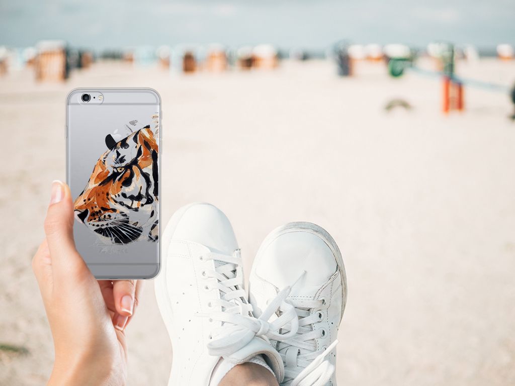 Omdat we tijgers zo bijzonder vinden, hebben we besloten deze voor zeer lage kosten voor jou op een Apple iPhone 6 | 6s Hoesje maken te zetten. Dit kunnen we goedkoop doen omdat we het drukwerk in eigen beheer doen. De tijger staat geschilderd op de tpu case tegen een grijs met wit geblokte achtergrond. De Watercolor Tiger kunnen we bedrukken op verschillende soorten hoesjes, zoals deze tpu cases. Deze case kan exclusief in het bezit van jou komen. Zeker als je er zelf nog unieke teksten en/of beelden aan toevoegt. Het tpu hoesje is zeer flexibel en wordt alleen aan de bovenzijde bedrukt met de tijger. De randen van dit flexibele hoesje blijven doorzichtig. Jij zorgt voor de perfecte bescherming van je smartphone met dit tpu hoesje met geschilderde tijger tegen een grijs met witte achtergrond.