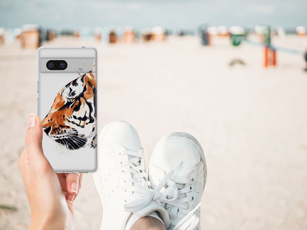 Omdat we tijgers zo bijzonder vinden, hebben we besloten deze voor zeer lage kosten voor jou op een Google Pixel 7A Hoesje maken te zetten. Dit kunnen we goedkoop doen omdat we het drukwerk in eigen beheer doen. De tijger staat geschilderd op de tpu case tegen een grijs met wit geblokte achtergrond. De Watercolor Tiger kunnen we bedrukken op verschillende soorten hoesjes, zoals deze tpu cases. Deze case kan exclusief in het bezit van jou komen. Zeker als je er zelf nog unieke teksten en/of beelden aan toevoegt. Het tpu hoesje is zeer flexibel en wordt alleen aan de bovenzijde bedrukt met de tijger. De randen van dit flexibele hoesje blijven doorzichtig. Jij zorgt voor de perfecte bescherming van je smartphone met dit tpu hoesje met geschilderde tijger tegen een grijs met witte achtergrond.