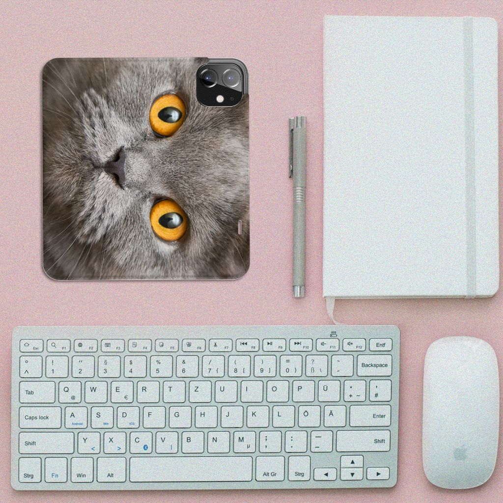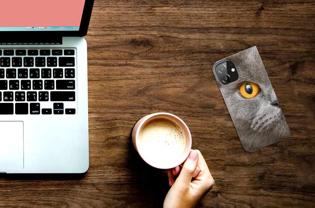 Dit hoesje met een afbeelding van de Brits Korthaar ziet er imponerend uit. Wellicht komt dat door de strakke blik van de Brits Korthaar, een stevige, gedrongen kat die aan het eind van de 19e eeuw in Engeland gefokt werd voor specifieke kleur en tekening in de vacht. De kleine oren en grote ronde ogen vallen op, alsmede de erg bolle wangen. Het is een grote en gespierde kat met een korte, dikke staart waarvan de top lichtjes afgerond is. Vroeger kwam het ras voornamelijk in de kleur blauw voor, maar op dit moderne hoesje staat natuurlijk de grijze versie afgebeeld. Het design staat op een iPhone 12 | iPhone 12 Pro Hoesje maken. Deze case beschermt jouw telefoon aan alle kanten en beschikt over een 1 opbergvakje en een speciale standaard. Het hoesje wordt afgesloten met een magneet aan de binnenzijde. De houder aan de binnenzijde is van TPU. Alle zijden van de stand case worden bedrukt.