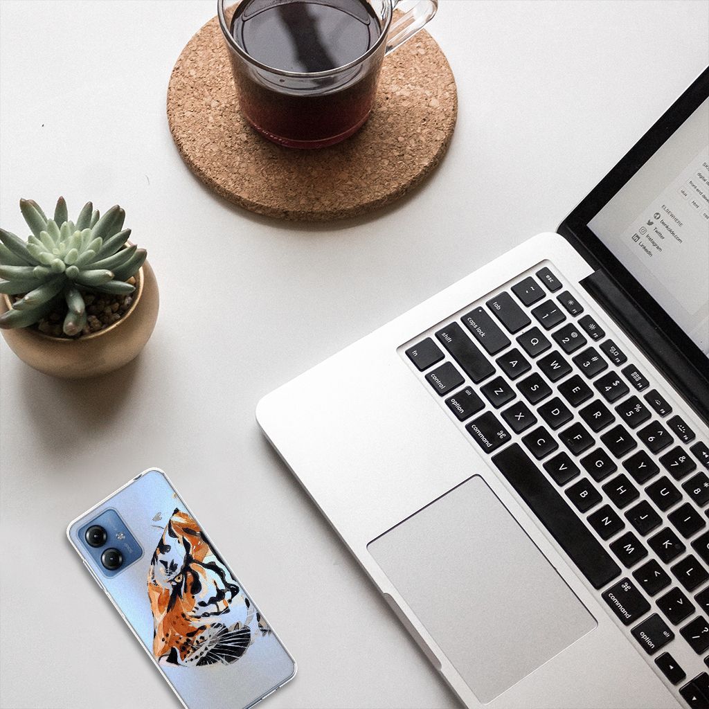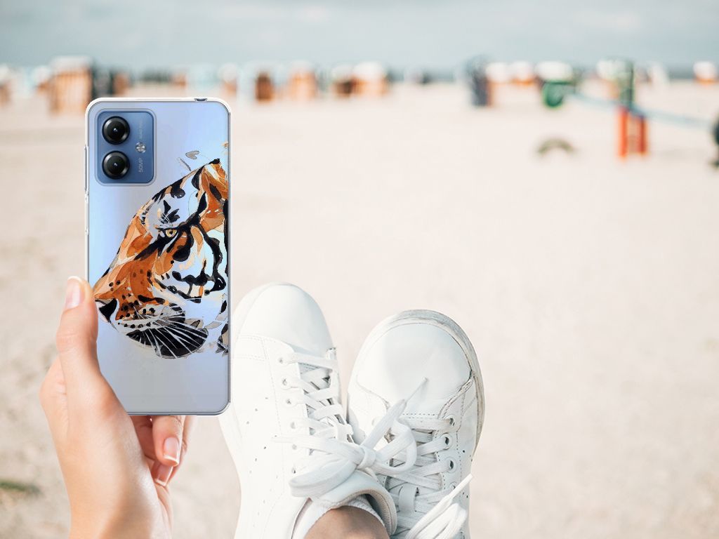 Omdat we tijgers zo bijzonder vinden, hebben we besloten deze voor zeer lage kosten voor jou op een Motorola Moto G14 Hoesje maken te zetten. Dit kunnen we goedkoop doen omdat we het drukwerk in eigen beheer doen. De tijger staat geschilderd op de tpu case tegen een grijs met wit geblokte achtergrond. De Watercolor Tiger kunnen we bedrukken op verschillende soorten hoesjes, zoals deze tpu cases. Deze case kan exclusief in het bezit van jou komen. Zeker als je er zelf nog unieke teksten en/of beelden aan toevoegt. Het tpu hoesje is zeer flexibel en wordt alleen aan de bovenzijde bedrukt met de tijger. De randen van dit flexibele hoesje blijven doorzichtig. Jij zorgt voor de perfecte bescherming van je smartphone met dit tpu hoesje met geschilderde tijger tegen een grijs met witte achtergrond.