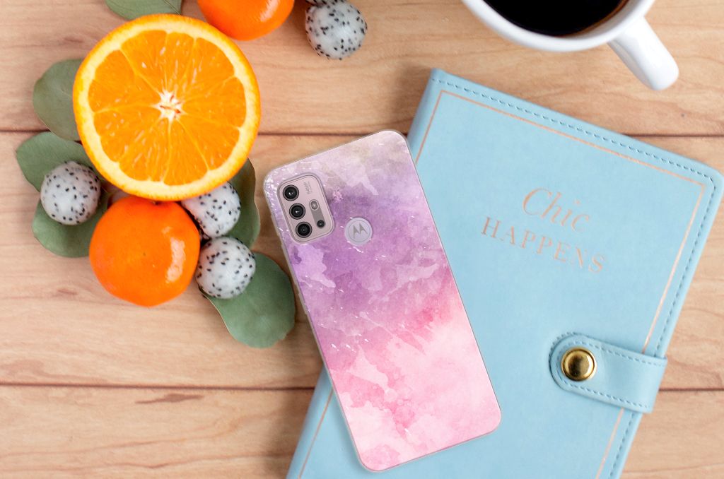 Dit sierlijke design hoesje met Pink Purple Paint is de ultieme beloning voor jezelf en voor je telefoon. Met zeer veel overtuiging is dit schilderachtige design ontworpen door B2C Telecom. Gevolg is dat jij een hele goede indruk achterlaat met jouw telefoon en een Motorola Moto G30 | G10 Hoesje maken met print, dat jouw telefoon aan de achterkant en zijkanten zeer goed beschermt. Het roze en het paars komt op een heerlijke manier samen in dit telefoonhoesje. Over smaak valt echter niet te twisten. Daarom hebben we nog vele andere sierlijke design hoesjes ontworpen, in allerlei andere vormen en kleuren. Kies het hoesje dat het best bij jou past. Dit TPU hoesje wordt alleen aan de bovenzijde bedrukt. De randen blijven transparant. Deze case is zeer flexibel en past altijd in je broekzak.