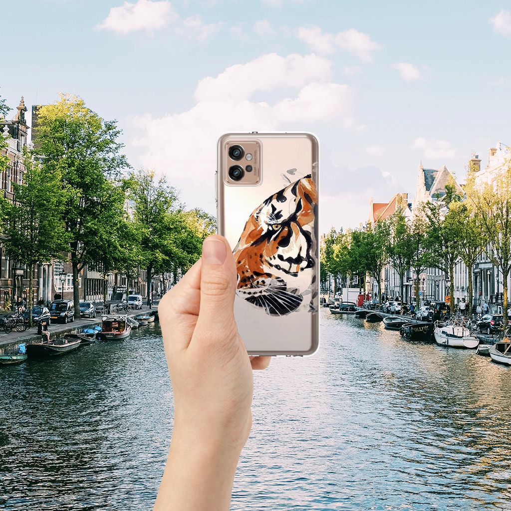 Omdat we tijgers zo bijzonder vinden, hebben we besloten deze voor zeer lage kosten voor jou op een Motorola Moto G32 Hoesje maken te zetten. Dit kunnen we goedkoop doen omdat we het drukwerk in eigen beheer doen. De tijger staat geschilderd op de tpu case tegen een grijs met wit geblokte achtergrond. De Watercolor Tiger kunnen we bedrukken op verschillende soorten hoesjes, zoals deze tpu cases. Deze case kan exclusief in het bezit van jou komen. Zeker als je er zelf nog unieke teksten en/of beelden aan toevoegt. Het tpu hoesje is zeer flexibel en wordt alleen aan de bovenzijde bedrukt met de tijger. De randen van dit flexibele hoesje blijven doorzichtig. Jij zorgt voor de perfecte bescherming van je smartphone met dit tpu hoesje met geschilderde tijger tegen een grijs met witte achtergrond.