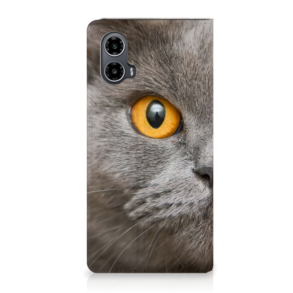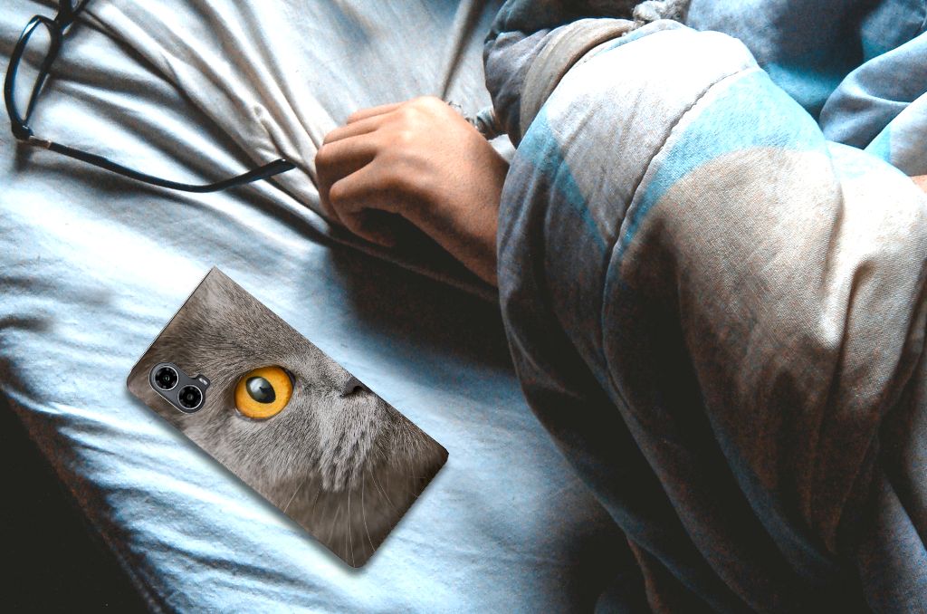 Dit hoesje met een afbeelding van de Brits Korthaar ziet er imponerend uit. Wellicht komt dat door de strakke blik van de Brits Korthaar, een stevige, gedrongen kat die aan het eind van de 19e eeuw in Engeland gefokt werd voor specifieke kleur en tekening in de vacht. De kleine oren en grote ronde ogen vallen op, alsmede de erg bolle wangen. Het is een grote en gespierde kat met een korte, dikke staart waarvan de top lichtjes afgerond is. Vroeger kwam het ras voornamelijk in de kleur blauw voor, maar op dit moderne hoesje staat natuurlijk de grijze versie afgebeeld. Het design staat op een Motorola Moto G34 Hoesje maken. Deze case beschermt jouw telefoon aan alle kanten en beschikt over een 1 opbergvakje en een speciale standaard. Het hoesje wordt afgesloten met een magneet aan de binnenzijde. De houder aan de binnenzijde is van TPU. Alle zijden van de stand case worden bedrukt.