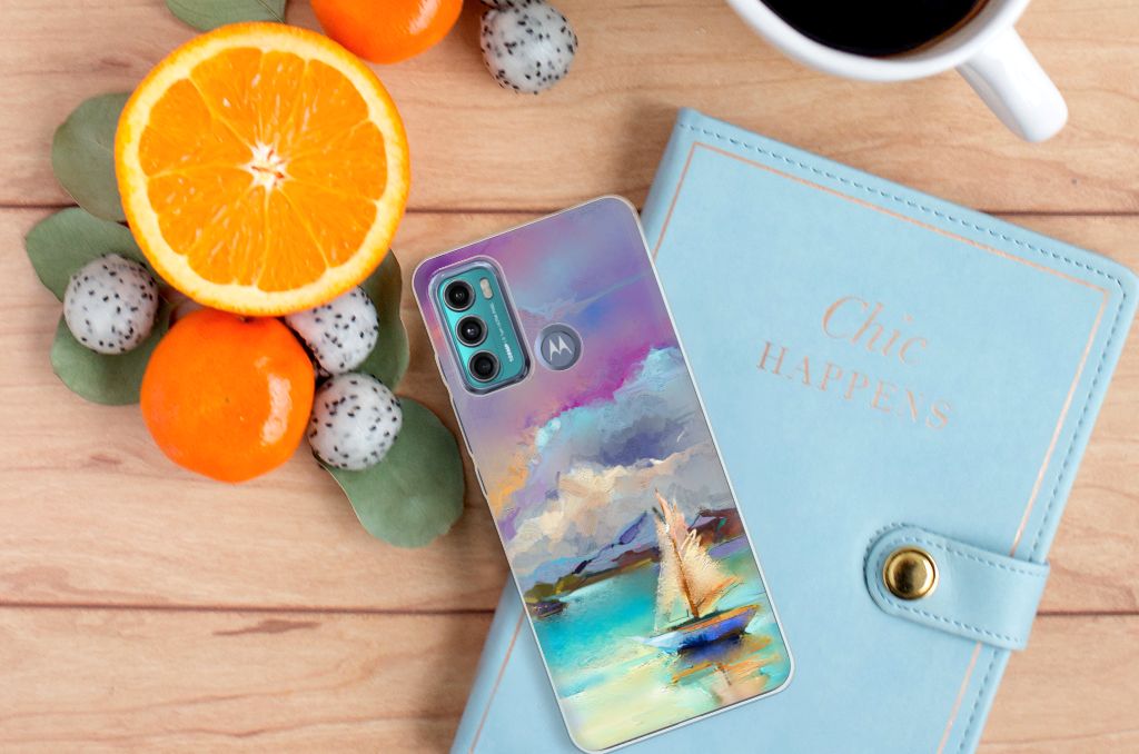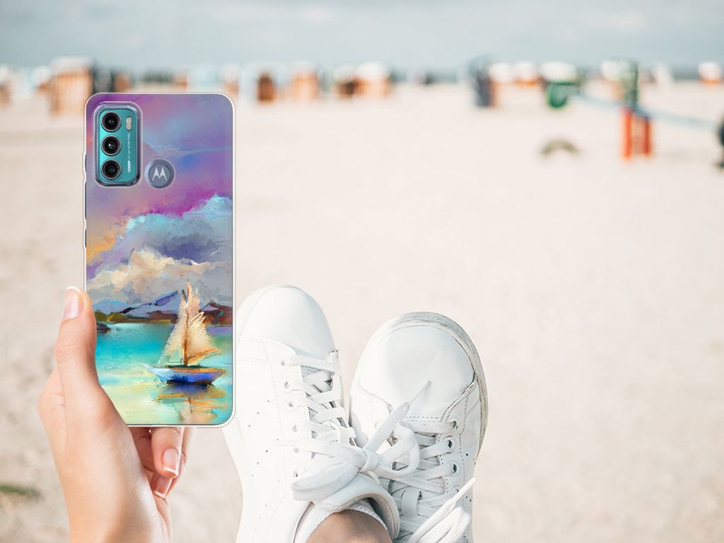 Het mooie ontwerp op dit hoesje zou je zo aan de muur willen hangen. Dit abstracte ‘schilderij’ van een bootje op een meer valt op vanwege de prachtige tinten blauw en paars. Een prachtig hoesje voor de liefhebber van kunst, boten en landschappen. Met een Hoesje maken is je Motorola Moto G60 goed beschermd. TPU is flexibel en heel erg sterk. Zo is je telefoon aan de achterkant en de randen heel goed beschermd. De case is aan de bovenkant bedrukt, de randen blijven transparant. Het TPU-hoesje is perfect te combineren met een screenprotector, zo zijn je telefoon en je beeldscherm altijd goed beschermd.