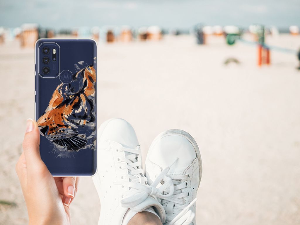 Omdat we tijgers zo bijzonder vinden, hebben we besloten deze voor zeer lage kosten voor jou op een Motorola Moto G60s Hoesje maken te zetten. Dit kunnen we goedkoop doen omdat we het drukwerk in eigen beheer doen. De tijger staat geschilderd op de tpu case tegen een grijs met wit geblokte achtergrond. De Watercolor Tiger kunnen we bedrukken op verschillende soorten hoesjes, zoals deze tpu cases. Deze case kan exclusief in het bezit van jou komen. Zeker als je er zelf nog unieke teksten en/of beelden aan toevoegt. Het tpu hoesje is zeer flexibel en wordt alleen aan de bovenzijde bedrukt met de tijger. De randen van dit flexibele hoesje blijven doorzichtig. Jij zorgt voor de perfecte bescherming van je smartphone met dit tpu hoesje met geschilderde tijger tegen een grijs met witte achtergrond.