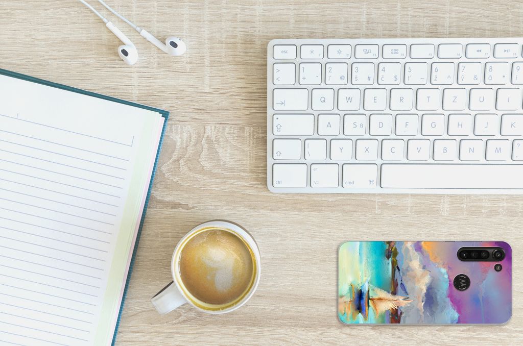 Het mooie ontwerp op dit hoesje zou je zo aan de muur willen hangen. Dit abstracte ‘schilderij’ van een bootje op een meer valt op vanwege de prachtige tinten blauw en paars. Een prachtig hoesje voor de liefhebber van kunst, boten en landschappen. Met een Hoesje maken is je Motorola Moto G8 Power goed beschermd. TPU is flexibel en heel erg sterk. Zo is je telefoon aan de achterkant en de randen heel goed beschermd. De case is aan de bovenkant bedrukt, de randen blijven transparant. Het TPU-hoesje is perfect te combineren met een screenprotector, zo zijn je telefoon en je beeldscherm altijd goed beschermd.