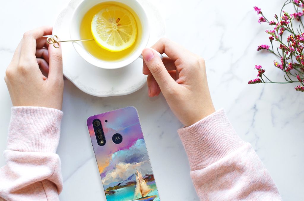 Het mooie ontwerp op dit hoesje zou je zo aan de muur willen hangen. Dit abstracte ‘schilderij’ van een bootje op een meer valt op vanwege de prachtige tinten blauw en paars. Een prachtig hoesje voor de liefhebber van kunst, boten en landschappen. Met een Hoesje maken is je Motorola Moto G8 Power Lite goed beschermd. TPU is flexibel en heel erg sterk. Zo is je telefoon aan de achterkant en de randen heel goed beschermd. De case is aan de bovenkant bedrukt, de randen blijven transparant. Het TPU-hoesje is perfect te combineren met een screenprotector, zo zijn je telefoon en je beeldscherm altijd goed beschermd.