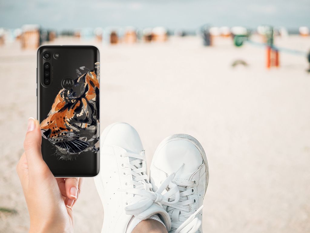 Omdat we tijgers zo bijzonder vinden, hebben we besloten deze voor zeer lage kosten voor jou op een Motorola Moto G8 Power Hoesje maken te zetten. Dit kunnen we goedkoop doen omdat we het drukwerk in eigen beheer doen. De tijger staat geschilderd op de tpu case tegen een grijs met wit geblokte achtergrond. De Watercolor Tiger kunnen we bedrukken op verschillende soorten hoesjes, zoals deze tpu cases. Deze case kan exclusief in het bezit van jou komen. Zeker als je er zelf nog unieke teksten en/of beelden aan toevoegt. Het tpu hoesje is zeer flexibel en wordt alleen aan de bovenzijde bedrukt met de tijger. De randen van dit flexibele hoesje blijven doorzichtig. Jij zorgt voor de perfecte bescherming van je smartphone met dit tpu hoesje met geschilderde tijger tegen een grijs met witte achtergrond.