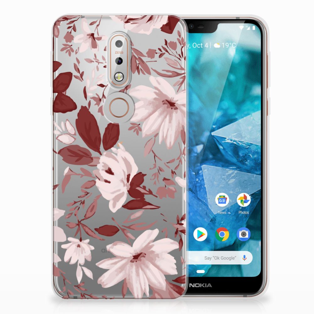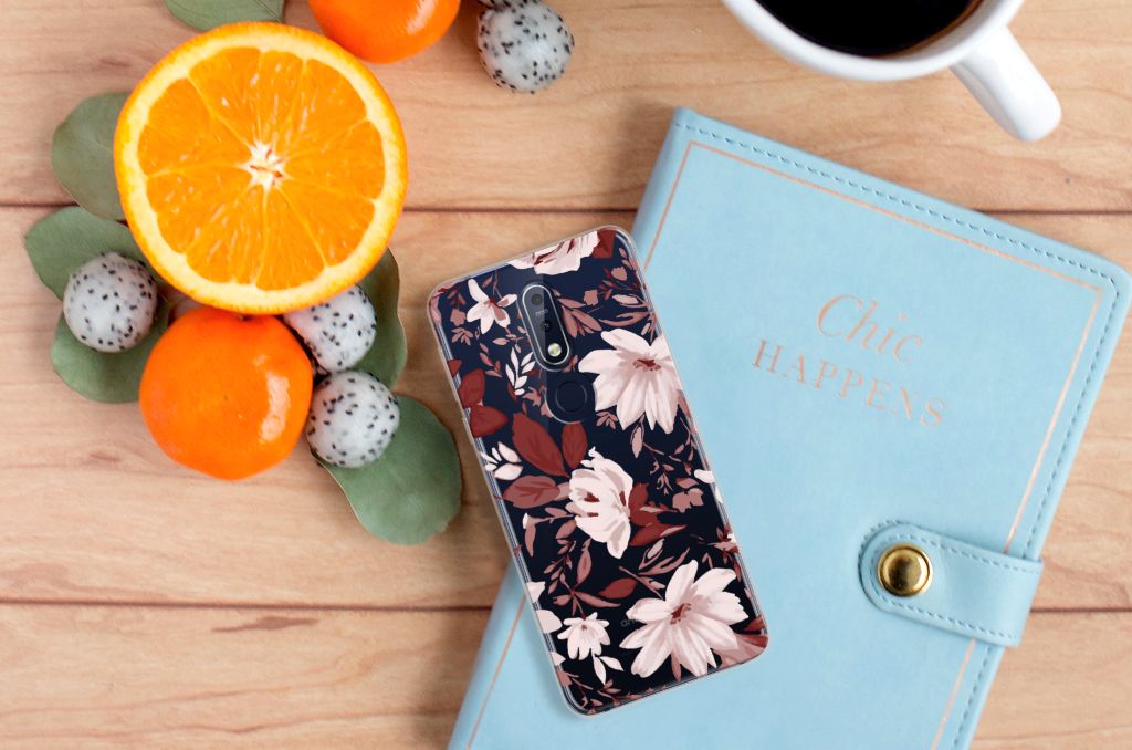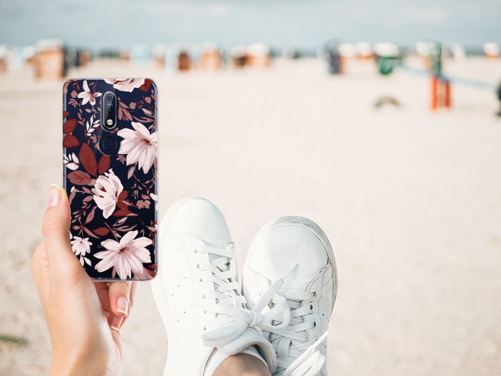 Nokia 7.1 TPU Hoesje Pauw met Bloemen