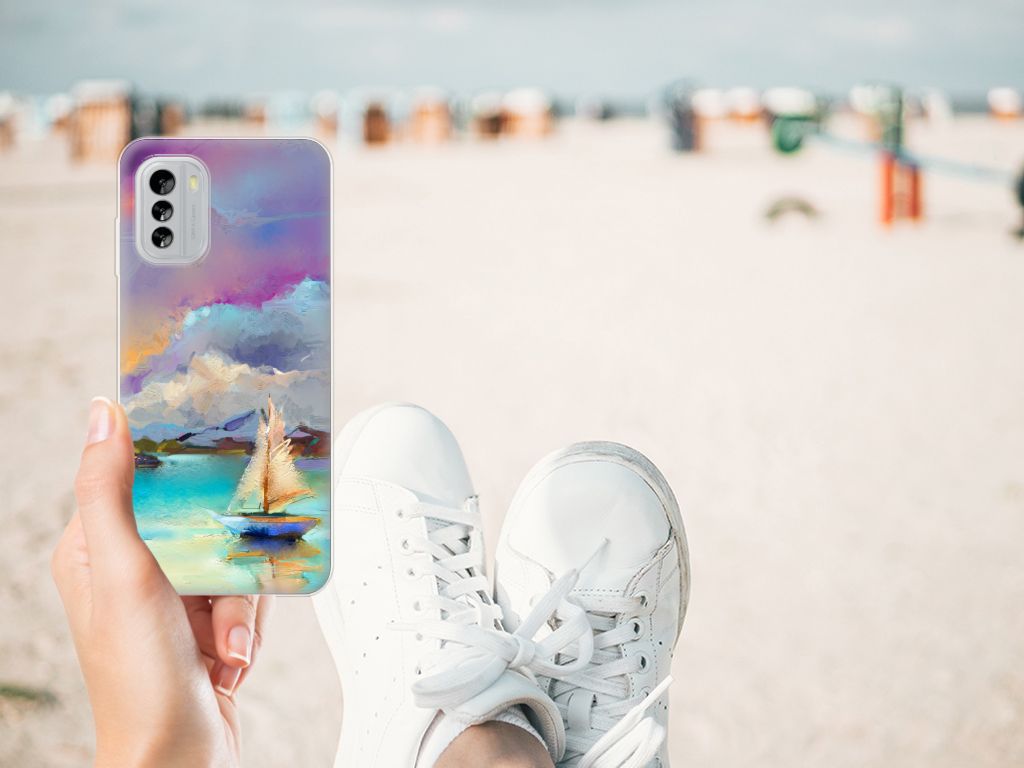 Het mooie ontwerp op dit hoesje zou je zo aan de muur willen hangen. Dit abstracte ‘schilderij’ van een bootje op een meer valt op vanwege de prachtige tinten blauw en paars. Een prachtig hoesje voor de liefhebber van kunst, boten en landschappen. Met een Hoesje maken is je Nokia G60 goed beschermd. TPU is flexibel en heel erg sterk. Zo is je telefoon aan de achterkant en de randen heel goed beschermd. De case is aan de bovenkant bedrukt, de randen blijven transparant. Het TPU-hoesje is perfect te combineren met een screenprotector, zo zijn je telefoon en je beeldscherm altijd goed beschermd.