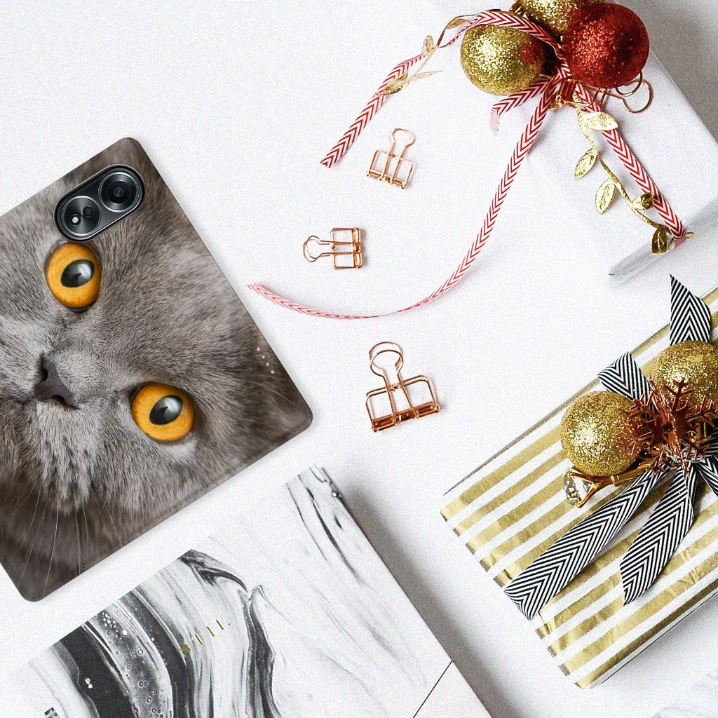 Dit hoesje met een afbeelding van de Brits Korthaar ziet er imponerend uit. Wellicht komt dat door de strakke blik van de Brits Korthaar, een stevige, gedrongen kat die aan het eind van de 19e eeuw in Engeland gefokt werd voor specifieke kleur en tekening in de vacht. De kleine oren en grote ronde ogen vallen op, alsmede de erg bolle wangen. Het is een grote en gespierde kat met een korte, dikke staart waarvan de top lichtjes afgerond is. Vroeger kwam het ras voornamelijk in de kleur blauw voor, maar op dit moderne hoesje staat natuurlijk de grijze versie afgebeeld. Het design staat op een OPPO A58 4G Hoesje maken. Deze case beschermt jouw telefoon aan alle kanten en beschikt over een 1 opbergvakje en een speciale standaard. Het hoesje wordt afgesloten met een magneet aan de binnenzijde. De houder aan de binnenzijde is van TPU. Alle zijden van de stand case worden bedrukt.
