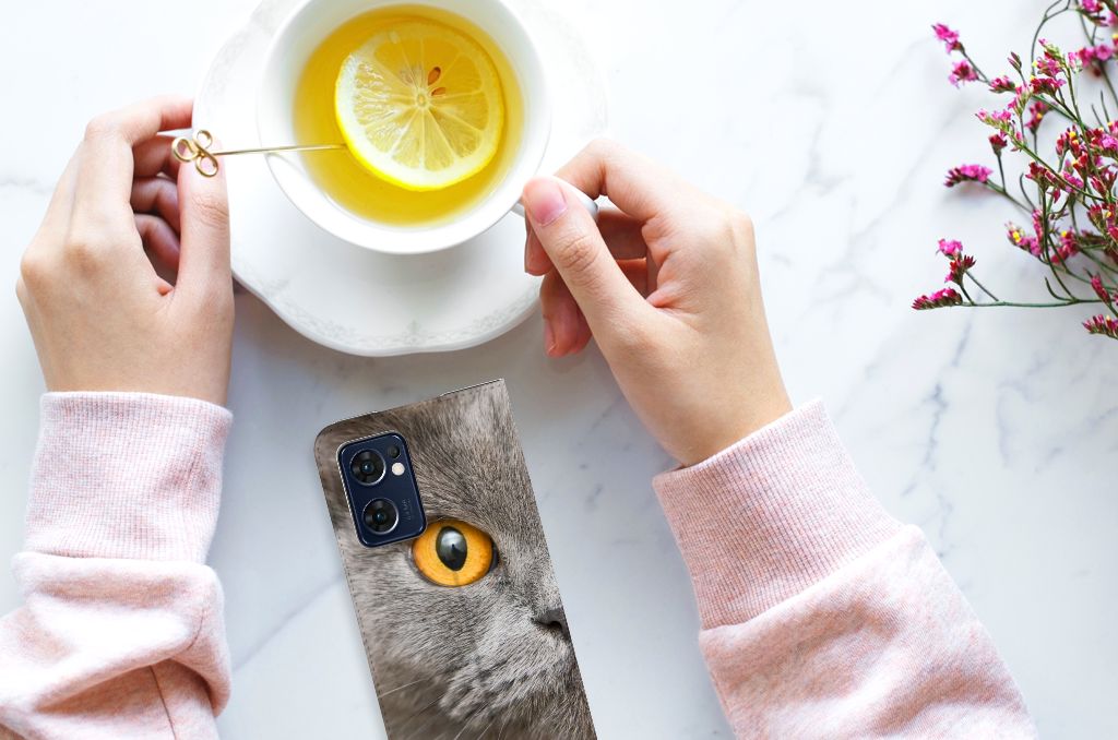 Dit hoesje met een afbeelding van de Brits Korthaar ziet er imponerend uit. Wellicht komt dat door de strakke blik van de Brits Korthaar, een stevige, gedrongen kat die aan het eind van de 19e eeuw in Engeland gefokt werd voor specifieke kleur en tekening in de vacht. De kleine oren en grote ronde ogen vallen op, alsmede de erg bolle wangen. Het is een grote en gespierde kat met een korte, dikke staart waarvan de top lichtjes afgerond is. Vroeger kwam het ras voornamelijk in de kleur blauw voor, maar op dit moderne hoesje staat natuurlijk de grijze versie afgebeeld. Het design staat op een OPPO Find X5 Lite | Reno7 5G Hoesje maken. Deze case beschermt jouw telefoon aan alle kanten en beschikt over een 1 opbergvakje en een speciale standaard. Het hoesje wordt afgesloten met een magneet aan de binnenzijde. De houder aan de binnenzijde is van TPU. Alle zijden van de stand case worden bedrukt.