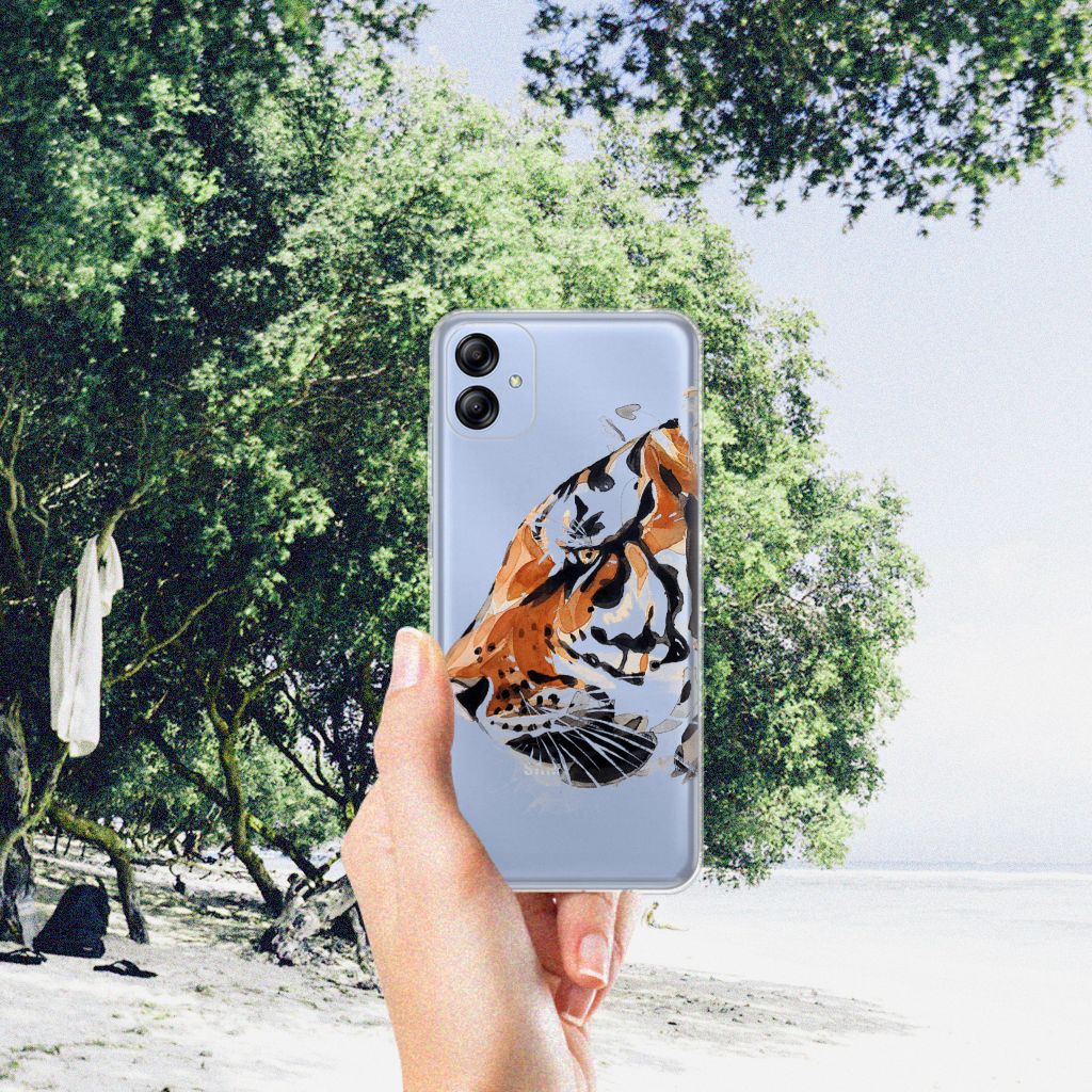 Omdat we tijgers zo bijzonder vinden, hebben we besloten deze voor zeer lage kosten voor jou op een Samsung Galaxy A04e Hoesje maken te zetten. Dit kunnen we goedkoop doen omdat we het drukwerk in eigen beheer doen. De tijger staat geschilderd op de tpu case tegen een grijs met wit geblokte achtergrond. De Watercolor Tiger kunnen we bedrukken op verschillende soorten hoesjes, zoals deze tpu cases. Deze case kan exclusief in het bezit van jou komen. Zeker als je er zelf nog unieke teksten en/of beelden aan toevoegt. Het tpu hoesje is zeer flexibel en wordt alleen aan de bovenzijde bedrukt met de tijger. De randen van dit flexibele hoesje blijven doorzichtig. Jij zorgt voor de perfecte bescherming van je smartphone met dit tpu hoesje met geschilderde tijger tegen een grijs met witte achtergrond.