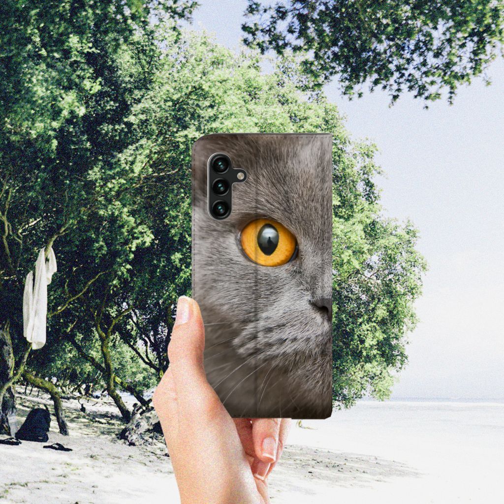 Dit hoesje met een afbeelding van de Brits Korthaar ziet er imponerend uit. Wellicht komt dat door de strakke blik van de Brits Korthaar, een stevige, gedrongen kat die aan het eind van de 19e eeuw in Engeland gefokt werd voor specifieke kleur en tekening in de vacht. De kleine oren en grote ronde ogen vallen op, alsmede de erg bolle wangen. Het is een grote en gespierde kat met een korte, dikke staart waarvan de top lichtjes afgerond is. Vroeger kwam het ras voornamelijk in de kleur blauw voor, maar op dit moderne hoesje staat natuurlijk de grijze versie afgebeeld. Het design staat op een Samsung Galaxy A13 (5G) | Samsung Galaxy A04s Hoesje maken. Deze case beschermt jouw telefoon aan alle kanten en beschikt over een 1 opbergvakje en een speciale standaard. Het hoesje wordt afgesloten met een magneet aan de binnenzijde. De houder aan de binnenzijde is van TPU. Alle zijden van de stand case worden bedrukt.
