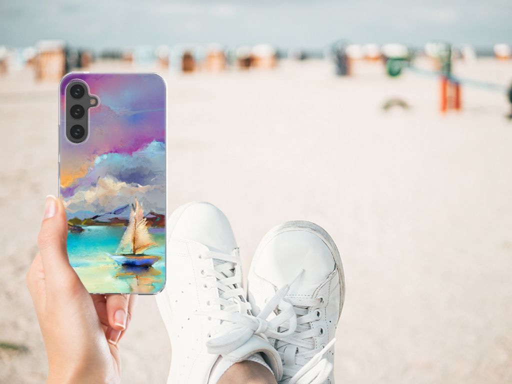 Het mooie ontwerp op dit hoesje zou je zo aan de muur willen hangen. Dit abstracte ‘schilderij’ van een bootje op een meer valt op vanwege de prachtige tinten blauw en paars. Een prachtig hoesje voor de liefhebber van kunst, boten en landschappen. Met een Hoesje maken is je Samsung Galaxy A34 goed beschermd. TPU is flexibel en heel erg sterk. Zo is je telefoon aan de achterkant en de randen heel goed beschermd. De case is aan de bovenkant bedrukt, de randen blijven transparant. Het TPU-hoesje is perfect te combineren met een screenprotector, zo zijn je telefoon en je beeldscherm altijd goed beschermd.