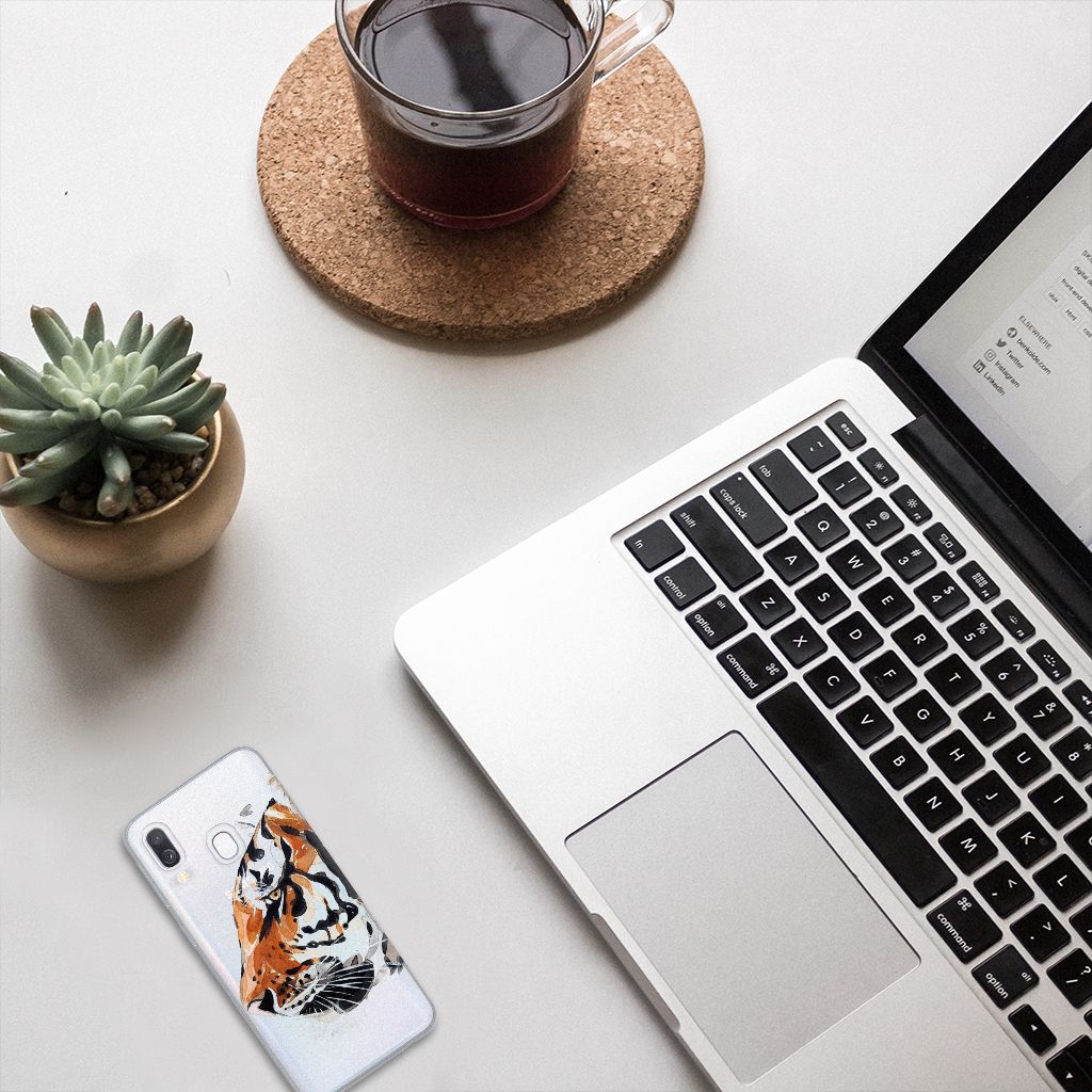 Omdat we tijgers zo bijzonder vinden, hebben we besloten deze voor zeer lage kosten voor jou op een Samsung Galaxy A40 Hoesje maken te zetten. Dit kunnen we goedkoop doen omdat we het drukwerk in eigen beheer doen. De tijger staat geschilderd op de tpu case tegen een grijs met wit geblokte achtergrond. De Watercolor Tiger kunnen we bedrukken op verschillende soorten hoesjes, zoals deze tpu cases. Deze case kan exclusief in het bezit van jou komen. Zeker als je er zelf nog unieke teksten en/of beelden aan toevoegt. Het tpu hoesje is zeer flexibel en wordt alleen aan de bovenzijde bedrukt met de tijger. De randen van dit flexibele hoesje blijven doorzichtig. Jij zorgt voor de perfecte bescherming van je smartphone met dit tpu hoesje met geschilderde tijger tegen een grijs met witte achtergrond.