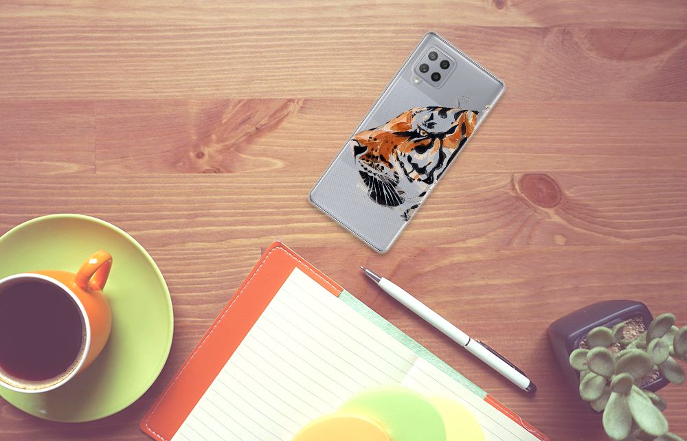 Omdat we tijgers zo bijzonder vinden, hebben we besloten deze voor zeer lage kosten voor jou op een Samsung Galaxy A42 Hoesje maken te zetten. Dit kunnen we goedkoop doen omdat we het drukwerk in eigen beheer doen. De tijger staat geschilderd op de tpu case tegen een grijs met wit geblokte achtergrond. De Watercolor Tiger kunnen we bedrukken op verschillende soorten hoesjes, zoals deze tpu cases. Deze case kan exclusief in het bezit van jou komen. Zeker als je er zelf nog unieke teksten en/of beelden aan toevoegt. Het tpu hoesje is zeer flexibel en wordt alleen aan de bovenzijde bedrukt met de tijger. De randen van dit flexibele hoesje blijven doorzichtig. Jij zorgt voor de perfecte bescherming van je smartphone met dit tpu hoesje met geschilderde tijger tegen een grijs met witte achtergrond.