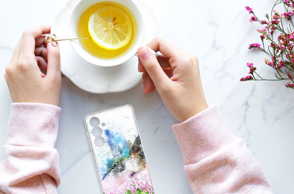 Voel jij je ook zo vrij als deze Vogel, die neerstrijkt op deze stuifmeel veroorzakende bloemensoort? Bestel dan dit schitterende design Hoesje maken, dat met veel gevoel voor artistiek is ontworpen. Stuifmeel van verscheidene boomsoorten, grassen en andere kruiden kan overigens gezondheidsklachten opleveren, in eerste instantie veelal via hooikoorts. Indien je jouw smartphone beschermt met dit hoesje, zal het zeker geen schade oplopen. Op de koop toe ziet er je Samsung Galaxy A54 5G er ook nog eens zeer hip en cool uit. Dit toffe hoesje is met veel plezier ontworpen, speciaal voor jou. Wacht daarom niet langer en bestel vliegensvlug deze geweldige case. Het design staat op een TPU case. Dit hoesje wordt alleen aan de bovenkant bedrukt en is zeer flexibel. De randen van het hoesje blijven transparant en worden niet bedrukt. Met dit hoesje past jouw telefoon altijd in je broekzak.