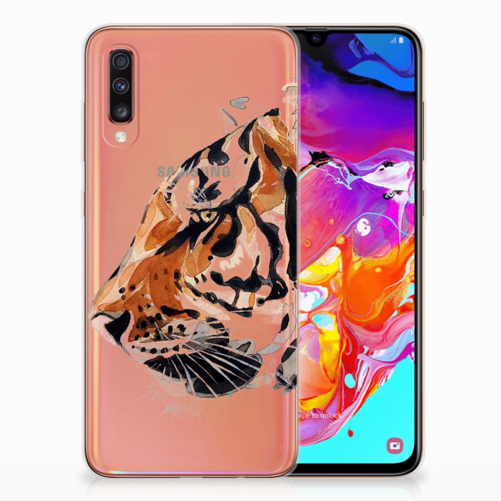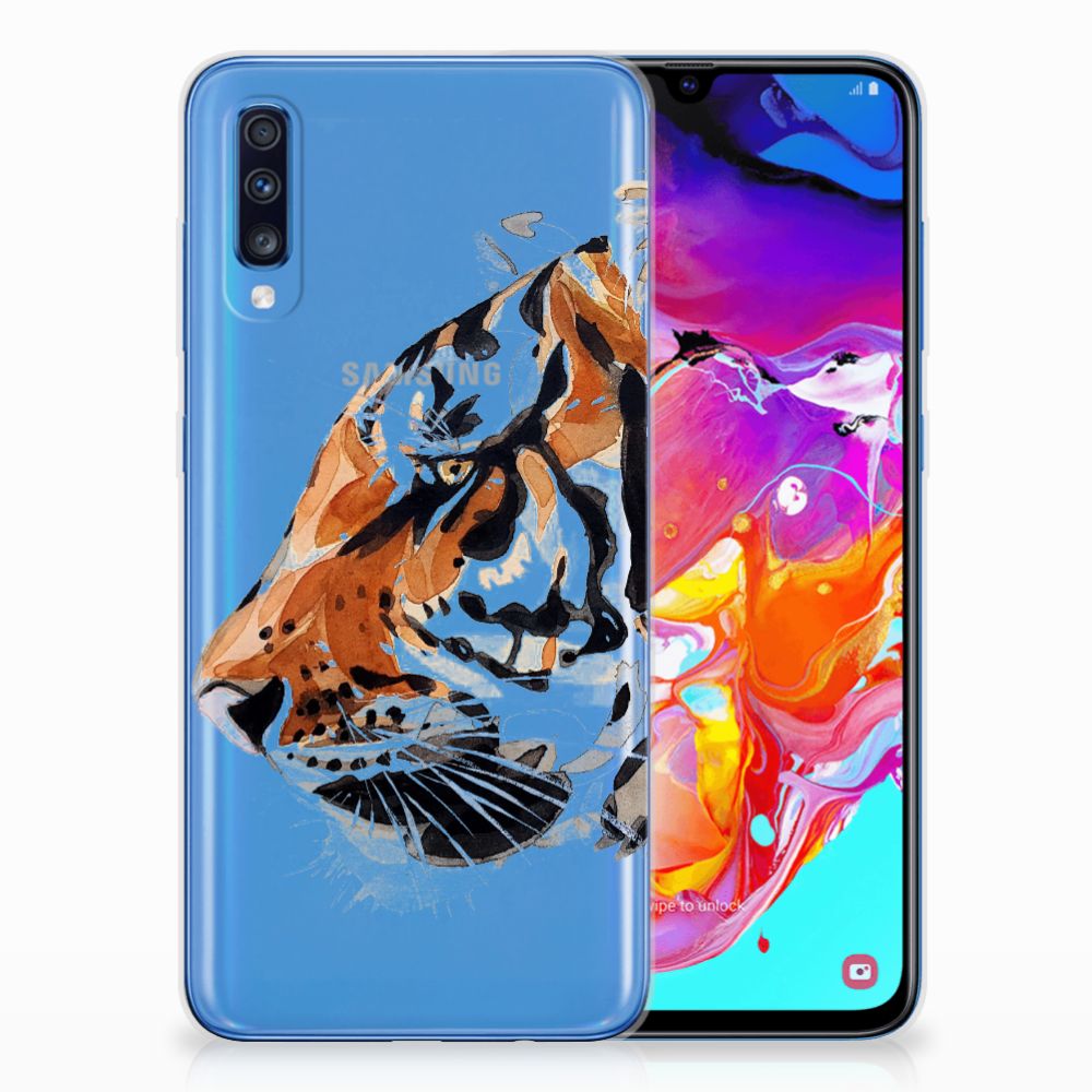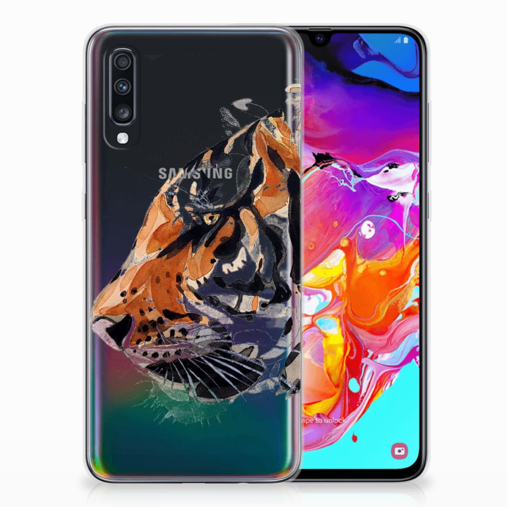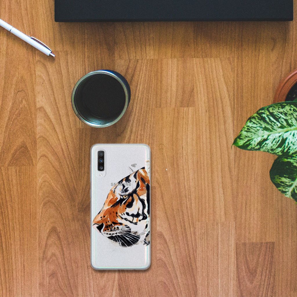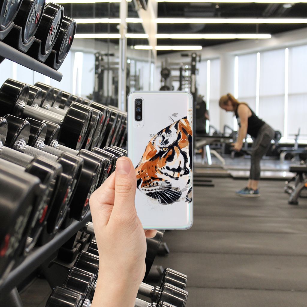 Omdat we tijgers zo bijzonder vinden, hebben we besloten deze voor zeer lage kosten voor jou op een Samsung Galaxy A70 Hoesje maken te zetten. Dit kunnen we goedkoop doen omdat we het drukwerk in eigen beheer doen. De tijger staat geschilderd op de tpu case tegen een grijs met wit geblokte achtergrond. De Watercolor Tiger kunnen we bedrukken op verschillende soorten hoesjes, zoals deze tpu cases. Deze case kan exclusief in het bezit van jou komen. Zeker als je er zelf nog unieke teksten en/of beelden aan toevoegt. Het tpu hoesje is zeer flexibel en wordt alleen aan de bovenzijde bedrukt met de tijger. De randen van dit flexibele hoesje blijven doorzichtig. Jij zorgt voor de perfecte bescherming van je smartphone met dit tpu hoesje met geschilderde tijger tegen een grijs met witte achtergrond.