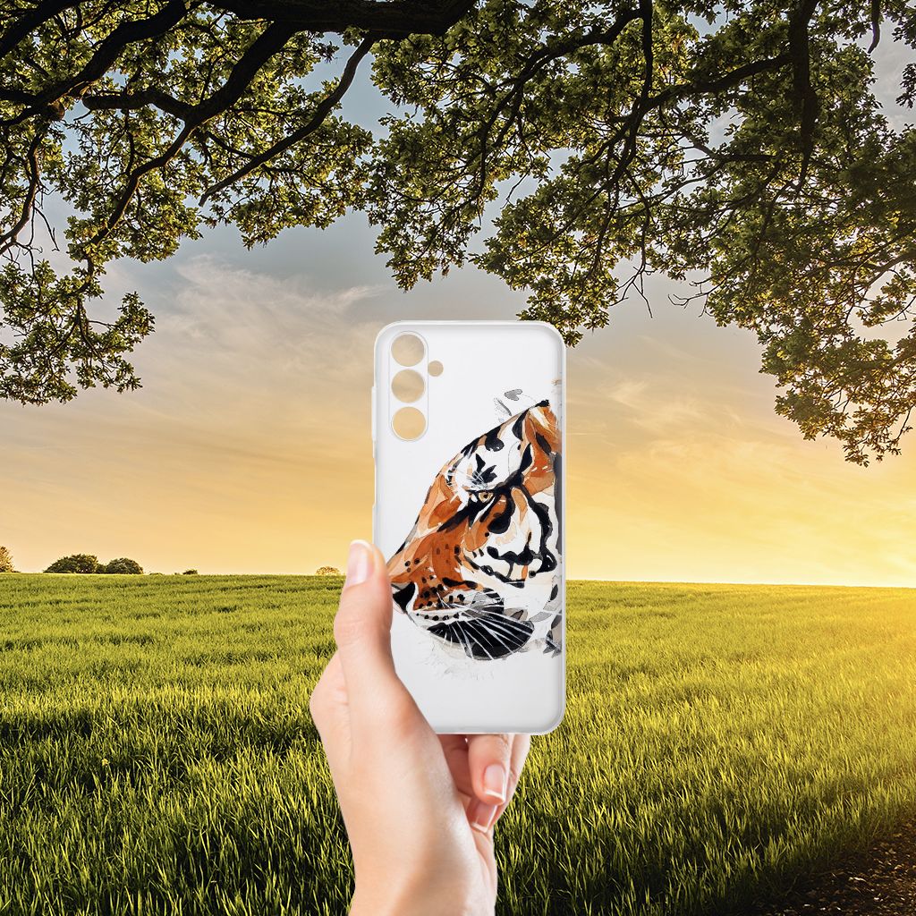 Omdat we tijgers zo bijzonder vinden, hebben we besloten deze voor zeer lage kosten voor jou op een Samsung Galaxy M14 Hoesje maken te zetten. Dit kunnen we goedkoop doen omdat we het drukwerk in eigen beheer doen. De tijger staat geschilderd op de tpu case tegen een grijs met wit geblokte achtergrond. De Watercolor Tiger kunnen we bedrukken op verschillende soorten hoesjes, zoals deze tpu cases. Deze case kan exclusief in het bezit van jou komen. Zeker als je er zelf nog unieke teksten en/of beelden aan toevoegt. Het tpu hoesje is zeer flexibel en wordt alleen aan de bovenzijde bedrukt met de tijger. De randen van dit flexibele hoesje blijven doorzichtig. Jij zorgt voor de perfecte bescherming van je smartphone met dit tpu hoesje met geschilderde tijger tegen een grijs met witte achtergrond.