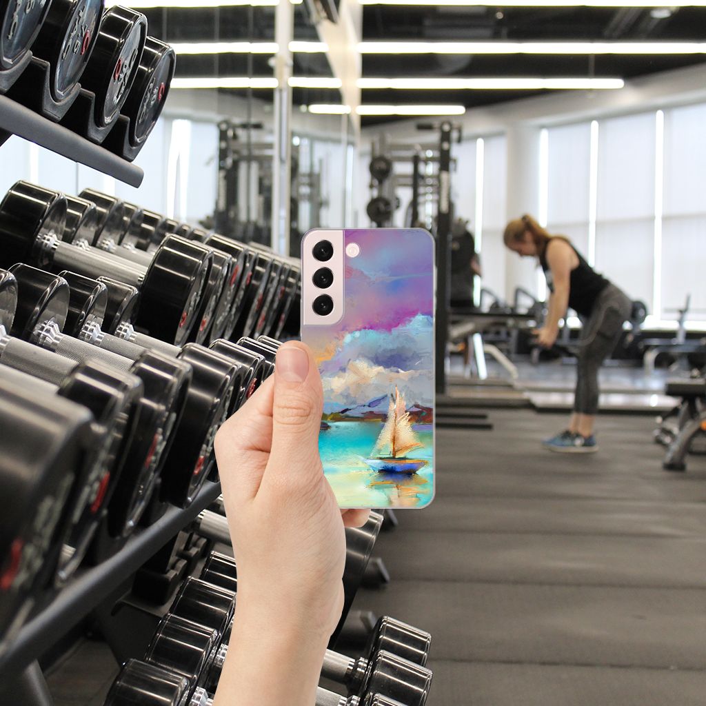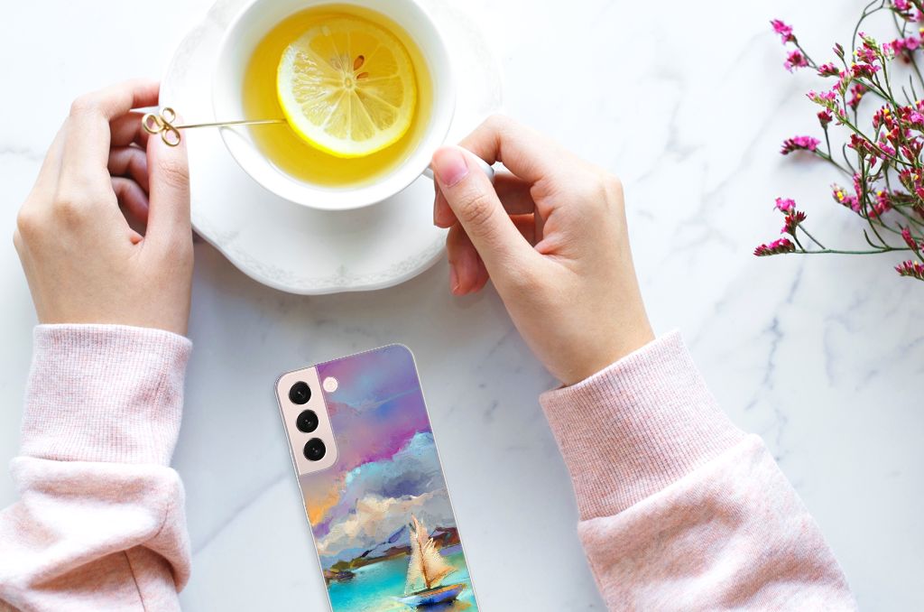 Het mooie ontwerp op dit hoesje zou je zo aan de muur willen hangen. Dit abstracte ‘schilderij’ van een bootje op een meer valt op vanwege de prachtige tinten blauw en paars. Een prachtig hoesje voor de liefhebber van kunst, boten en landschappen. Met een Hoesje maken is je Samsung Galaxy S22 goed beschermd. TPU is flexibel en heel erg sterk. Zo is je telefoon aan de achterkant en de randen heel goed beschermd. De case is aan de bovenkant bedrukt, de randen blijven transparant. Het TPU-hoesje is perfect te combineren met een screenprotector, zo zijn je telefoon en je beeldscherm altijd goed beschermd.