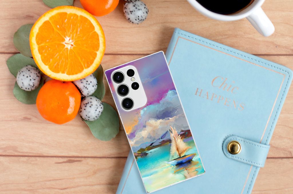 Het mooie ontwerp op dit hoesje zou je zo aan de muur willen hangen. Dit abstracte ‘schilderij’ van een bootje op een meer valt op vanwege de prachtige tinten blauw en paars. Een prachtig hoesje voor de liefhebber van kunst, boten en landschappen. Met een Hoesje maken is je Samsung Galaxy S23 Ultra goed beschermd. TPU is flexibel en heel erg sterk. Zo is je telefoon aan de achterkant en de randen heel goed beschermd. De case is aan de bovenkant bedrukt, de randen blijven transparant. Het TPU-hoesje is perfect te combineren met een screenprotector, zo zijn je telefoon en je beeldscherm altijd goed beschermd.
