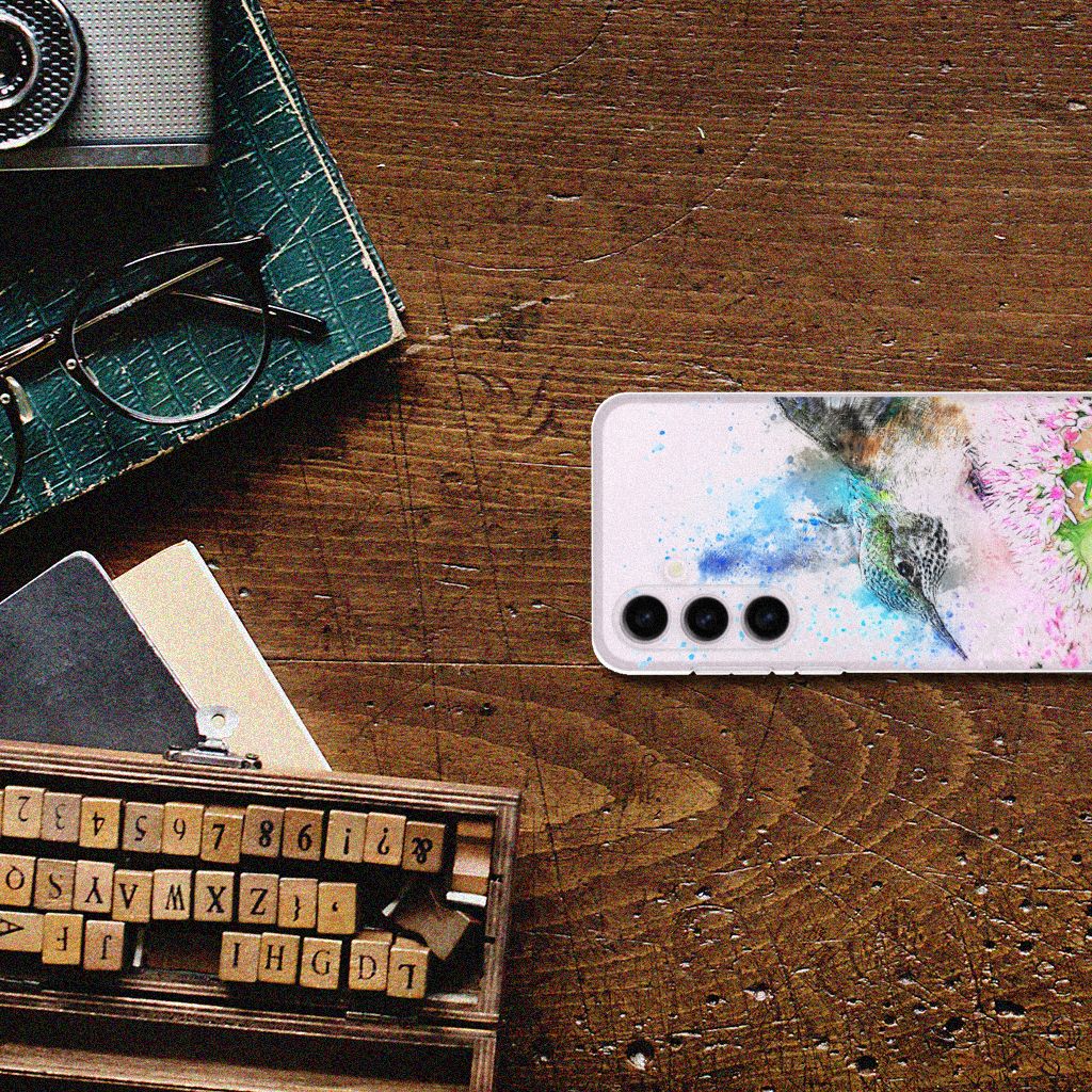 Voel jij je ook zo vrij als deze Vogel, die neerstrijkt op deze stuifmeel veroorzakende bloemensoort? Bestel dan dit schitterende design Hoesje maken, dat met veel gevoel voor artistiek is ontworpen. Stuifmeel van verscheidene boomsoorten, grassen en andere kruiden kan overigens gezondheidsklachten opleveren, in eerste instantie veelal via hooikoorts. Indien je jouw smartphone beschermt met dit hoesje, zal het zeker geen schade oplopen. Op de koop toe ziet er je Samsung Galaxy S24 Plus er ook nog eens zeer hip en cool uit. Dit toffe hoesje is met veel plezier ontworpen, speciaal voor jou. Wacht daarom niet langer en bestel vliegensvlug deze geweldige case. Het design staat op een TPU case. Dit hoesje wordt alleen aan de bovenkant bedrukt en is zeer flexibel. De randen van het hoesje blijven transparant en worden niet bedrukt. Met dit hoesje past jouw telefoon altijd in je broekzak.