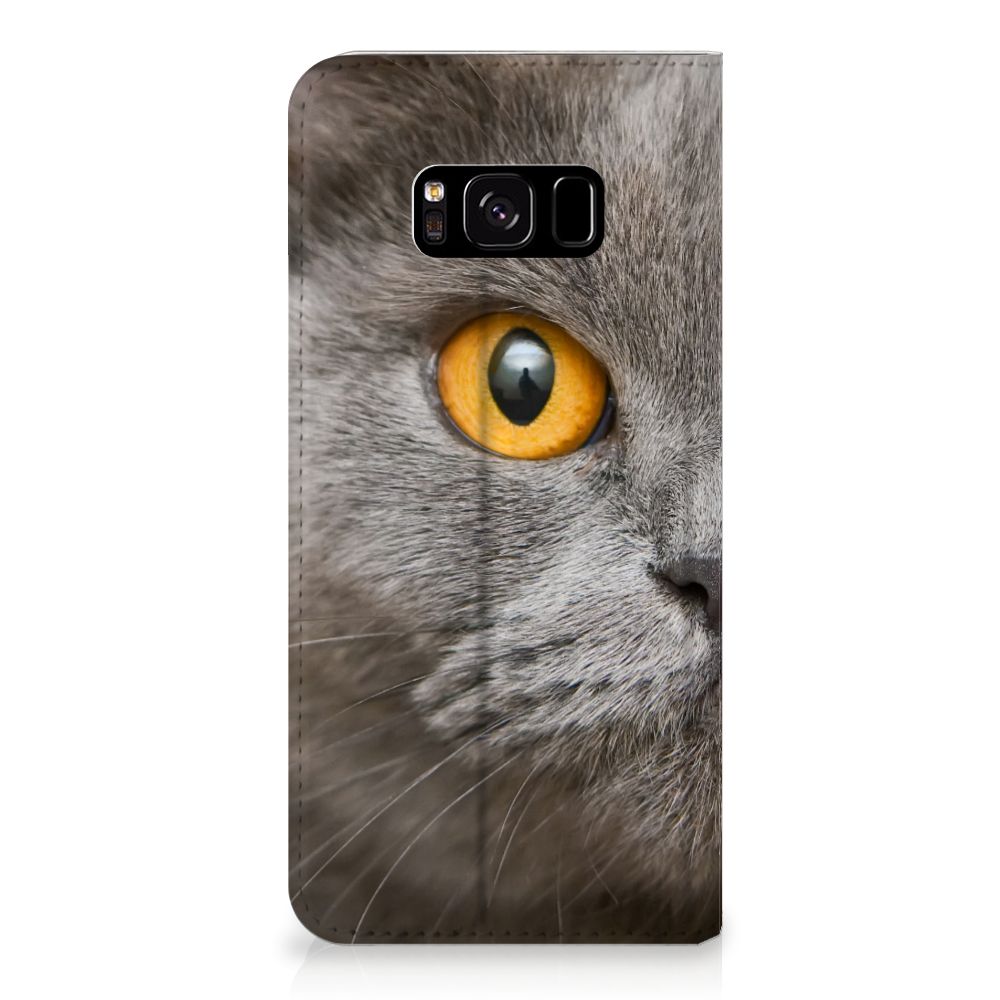 Dit hoesje met een afbeelding van de Brits Korthaar ziet er imponerend uit. Wellicht komt dat door de strakke blik van de Brits Korthaar, een stevige, gedrongen kat die aan het eind van de 19e eeuw in Engeland gefokt werd voor specifieke kleur en tekening in de vacht. De kleine oren en grote ronde ogen vallen op, alsmede de erg bolle wangen. Het is een grote en gespierde kat met een korte, dikke staart waarvan de top lichtjes afgerond is. Vroeger kwam het ras voornamelijk in de kleur blauw voor, maar op dit moderne hoesje staat natuurlijk de grijze versie afgebeeld. Het design staat op een Samsung Galaxy S8 Hoesje maken. Deze case beschermt jouw telefoon aan alle kanten en beschikt over een 1 opbergvakje en een speciale standaard. Het hoesje wordt afgesloten met een magneet aan de binnenzijde. De houder aan de binnenzijde is van TPU. Alle zijden van de stand case worden bedrukt.