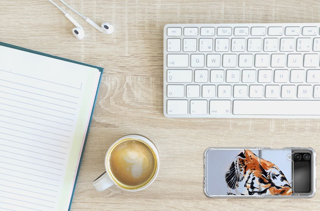 Omdat we tijgers zo bijzonder vinden, hebben we besloten deze voor zeer lage kosten voor jou op een Samsung Galaxy Z Flip 4 Hoesje maken te zetten. Dit kunnen we goedkoop doen omdat we het drukwerk in eigen beheer doen. De tijger staat geschilderd op de tpu case tegen een grijs met wit geblokte achtergrond. De Watercolor Tiger kunnen we bedrukken op verschillende soorten hoesjes, zoals deze tpu cases. Deze case kan exclusief in het bezit van jou komen. Zeker als je er zelf nog unieke teksten en/of beelden aan toevoegt. Het tpu hoesje is zeer flexibel en wordt alleen aan de bovenzijde bedrukt met de tijger. De randen van dit flexibele hoesje blijven doorzichtig. Jij zorgt voor de perfecte bescherming van je smartphone met dit tpu hoesje met geschilderde tijger tegen een grijs met witte achtergrond.